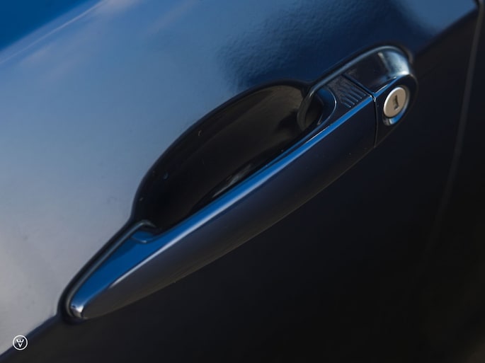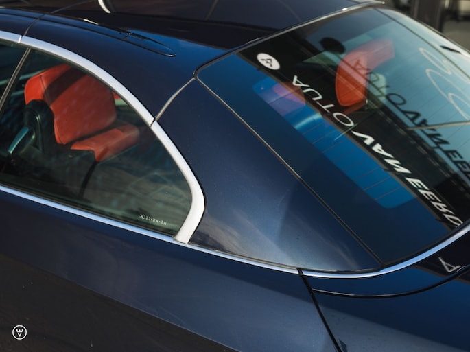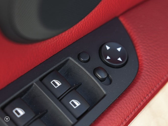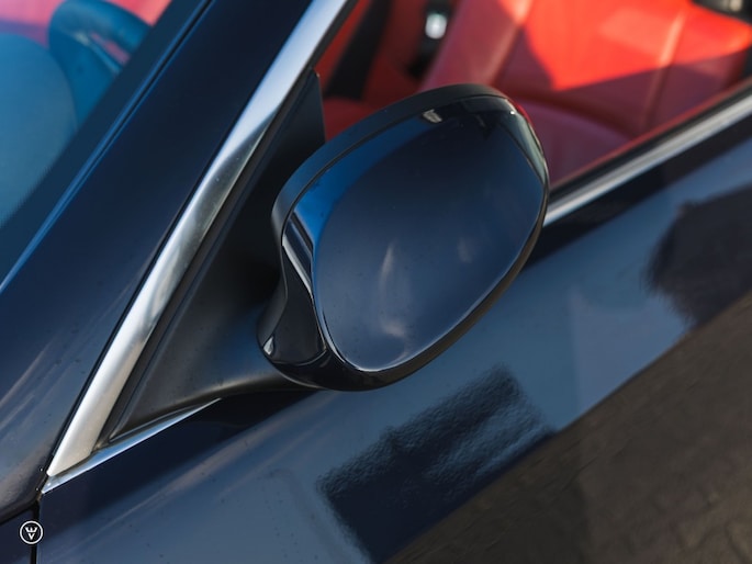 Je besluit tot slot je bestelling in te leveren met één meerprijs-loze maar daarom des te genialere twist: je kiest voor een zeer gewaagde en tegelijk heerlijk klassieke combinatie van donkerblauw metallic lak over lipstick-rood leer. Wat een genot als je zo op een zonnige dag het dak open gooit, de pook in D trekt – en met een heerlijk romige roffel de neus op de einder richt…