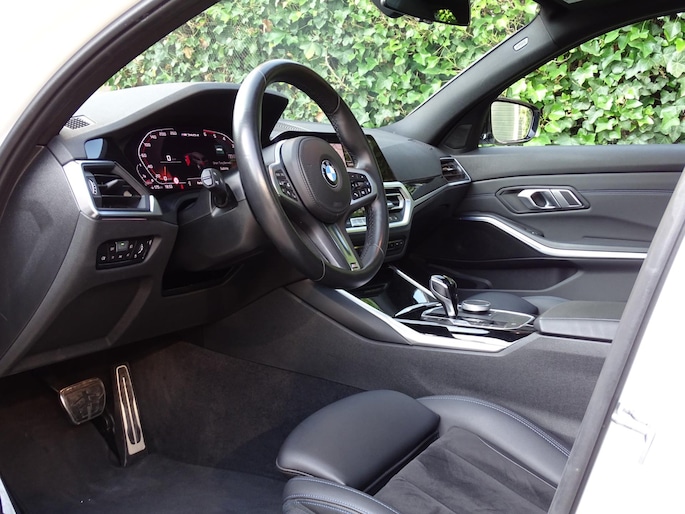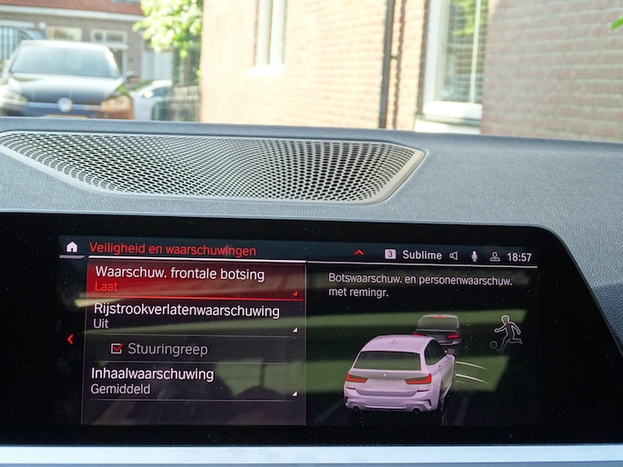 Met de DAB-ontvanger luistert u naar glasheldere digitale radio. Dankzij de spraaksturing bedient u verschillende functies zonder uw handen van het stuur te halen. Altijd een deskundige gids aan boord, dankzij het navigatiesysteem met harde schijf. De electronic climate control zorgt voor een behaaglijk klimaat in de auto. De achteruitrijcamera laat duidelijk zien hoeveel ruimte u nog heeft bij het inparkeren. Om de veiligheid onderweg te verhogen, heeft deze BMW zowel een automatisch inschakelbare verlichting als een regensensor aan boord, zodat hij zelf de verlichting en de ruitenwissers kan inschakelen. Ook is de auto voorzien van adaptive cruise control. Deze BMW 3-serie Touring is voorzien van sensoren aan de achterzijde om een achteropkomend verkeer waarschuwing te geven als de afstand tussen u en een achterligger te klein is. Een extra gevoel van veiligheid: de kruisend verkeer detectie anticipeert en waarschuwt als aanrijding met een tegenligger dreigt. Het doek is gevallen voor de ouderwetse autosleutel. Instappen en wegrijden gaat met keyless start. Met sportstuur met schakelpaddels, automatisch dimmende binnen- en buitenspiegels, boordcomputer en centrale deurvergrendeling met afstandsbediening is deze auto helemaal compleet.