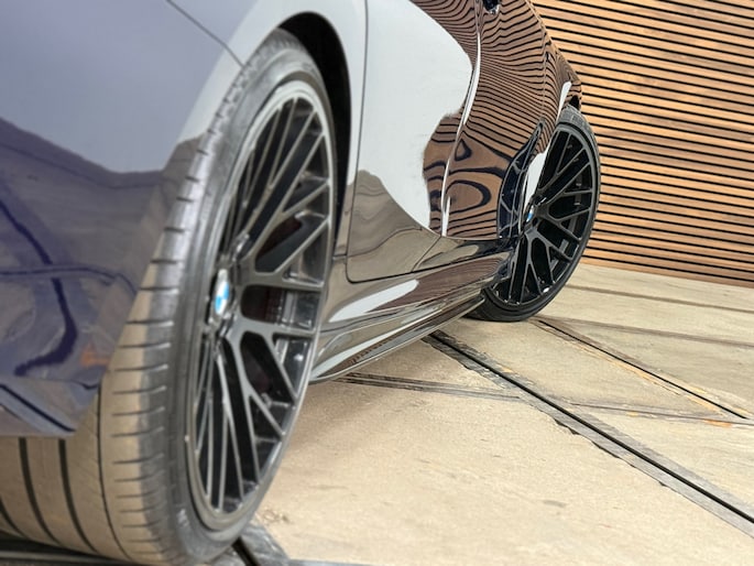 De M340i is uitgevoerd met vrijwel alle opties die je kunt aanvinken, aangevuld met een aantal serieuze upgrades, zo staat hij op 20 inch lichtmetalen velgen, is hij voorzien van H&R verlagingsveren en heeft hij meerdere performance onderdelen gekregen waaronder: