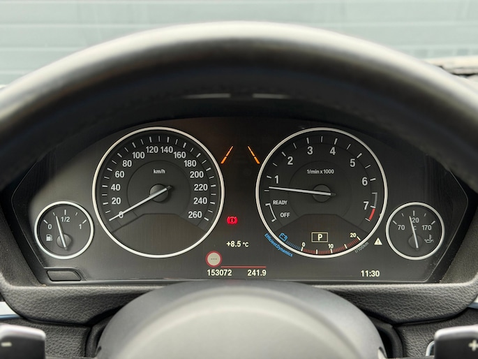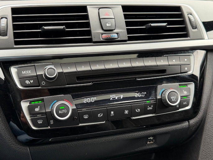 Zoals u mag verwachten van deze BMW 3-serie is hij uitgerust met een reeks aan actieve veiligheidssystemen. Verkeersborddetectie herkent tijdelijke en permanente verkeersborden langs en boven de weg. Het Lane-keeping systeem doet precies wat nodig is: waarschuwen en corrigeren bij onbedoelde overschrijding van de rijstrooklijnen. Brake assist verhoogt de remdruk in een noodsituatie zodat u sneller stil staat. In deze BMW vinden we verder een head-up display, dodehoekdetectie, hill hold functie en bandenspanningcontrolesysteem.