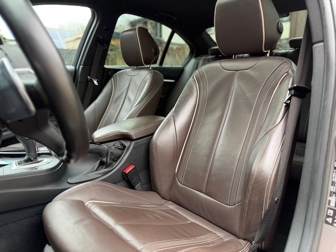 Alle technologie in de BMW 3-serie is er op gericht om uw rit veilig en gemakkelijk te laten verlopen. De aandrijving wordt verzorgd door een zescilinder motor en een automatische transmissie. Iedereen kan het beamen: een lederen interieur is levend en luxe. Om van comfort nog maar te zwijgen. En dat komt allemaal nog beter tot z'n recht dankzij het elektrisch bediende glazen panorama dak. Zit u goed? De stoelen zijn eenvoudig instelbaar dankzij de elektrische bediening met geheugen. Tot de uitrusting van deze BMW behoren ook 17 inch lichtmetalen velgen, LED koplampen, extra getint glas, verwarmde ruitensproeiers en snelheidsafhankelijke stuurbekrachtiging.