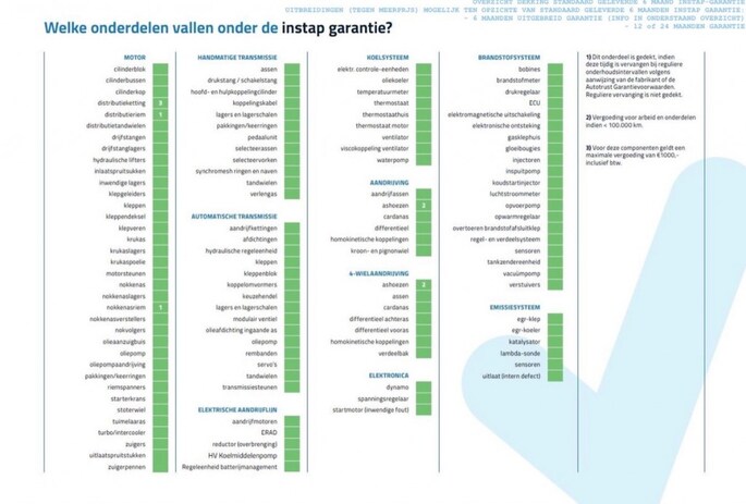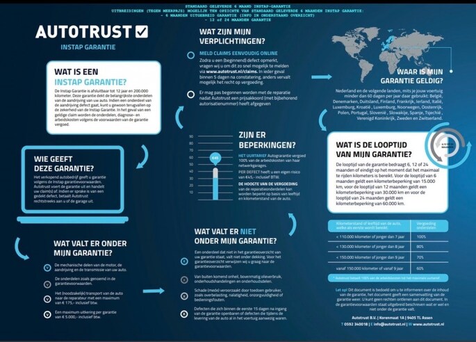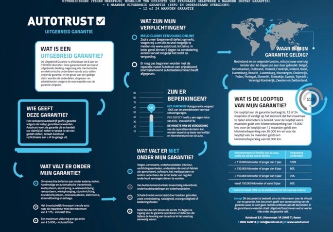 Auto's tot 16 jaar & tot 200.000 km: 6 MAANDEN EUROPESE AUTOTRUST GARANTIE! (met uitzondering van model-specifieke beperkingen Autotrust) Overige auto's ALTIJD 4 WEKEN GARANTIE op motor en versnellingsbak (met uitzondering van export & verkoop op handelsbasis) Financiering mogelijk
