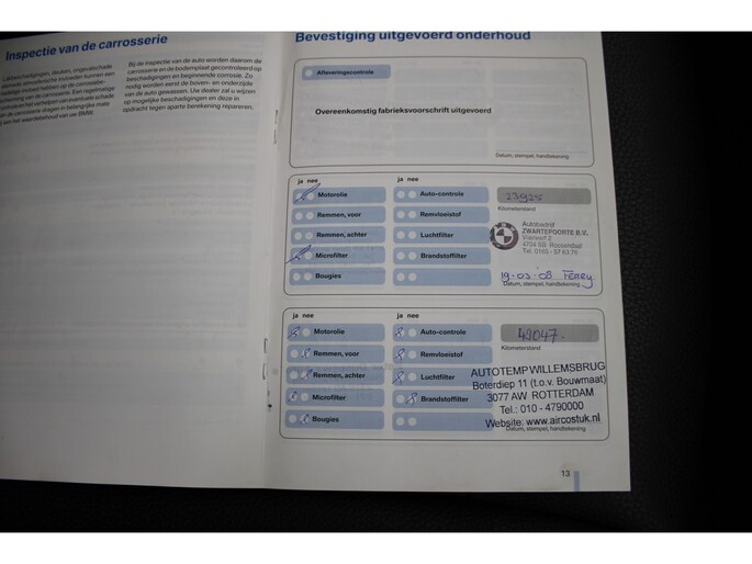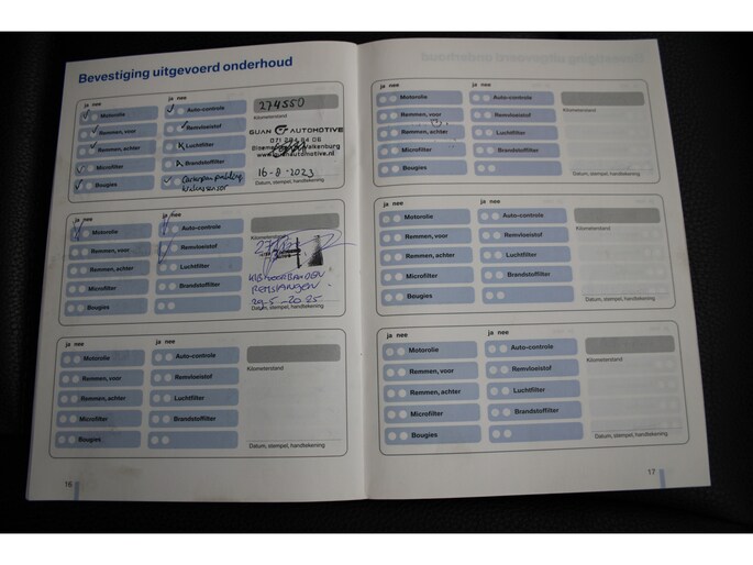Onderhoudsboekjes: Aanwezig