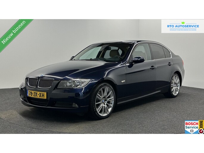 Stijlvolle vormgeving, een comfortabel en ruim interieur, een onderstel dat alle wegen en omstandigheden aankan en een motor die topprestaties levert bij een bescheiden brandstofverbruik: deze BMW 3-serie heeft het allemaal. Hij heeft een benzinemotor en een handgeschakelde versnellingsbak. Hoge kwaliteit is ook binnenin aanwezig. Kijkt u maar naar de leren bekleding! Ziet er goed uit, die sportstoelen. Maar waar het om gaat, is de solide zit onder alle omstandigheden. De uitmonstering van deze auto wordt gecompleteerd door onder meer 18 inch lichtmetalen velgen en warmtewerend glas.