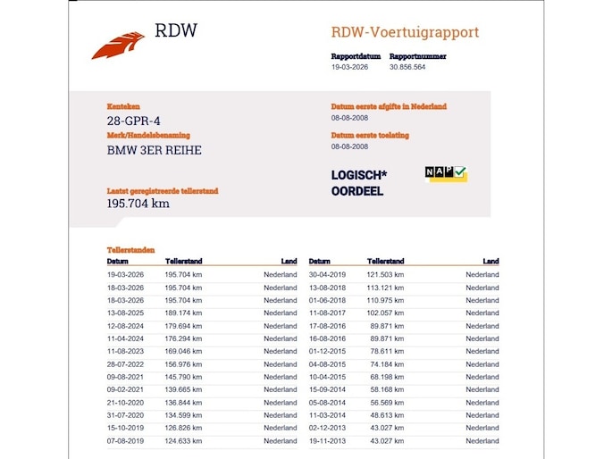 Kilometerstand gecontroleerd