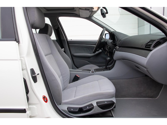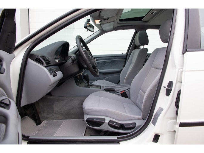 Wij hebben deze prachtige, originele en onverprutste BMW E46 in Duitsland aangekocht bij de 2e eigenaar. Slechts 133.000KM. Van binnen en buiten in een hele nette verzorgde conditie. Zelden kom je nog zo'n nette BMW E46 tegen. Tijdloze kleurstelling Alpinweiss 3 met een mooi lichtgrijze stoffen interieur (bekleding is schoon en onbeschadigd). Voorzien van een goed werkende Climate control, elektrisch schuif/kanteldak en een soepel schakelende automaat. Auto rijdt dan ook perfect. Deze auto is ook interessant voor de Youngtimer regeling.
