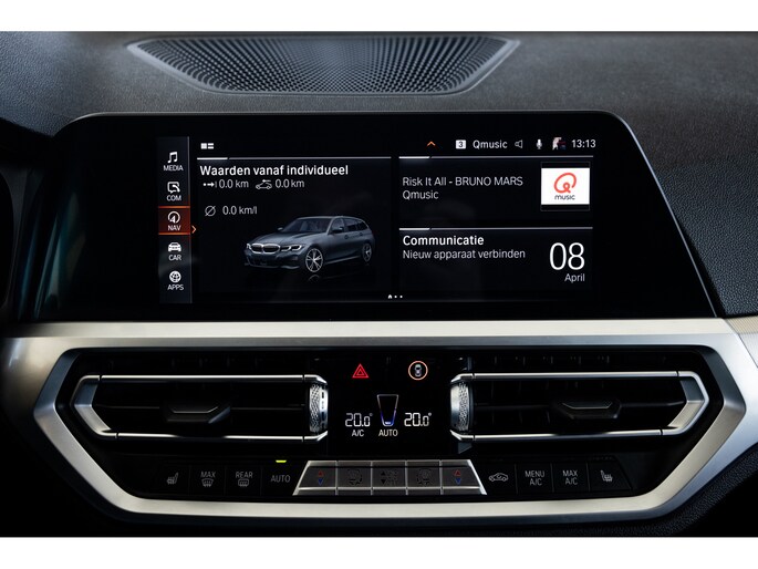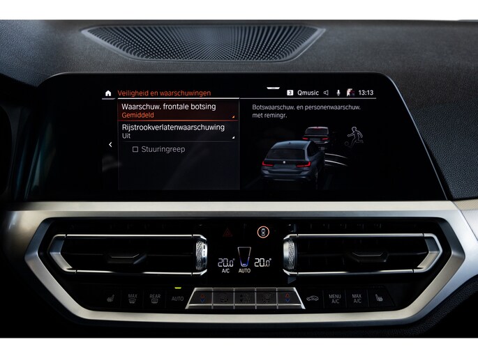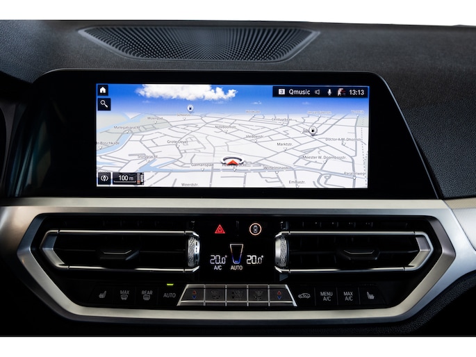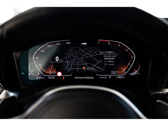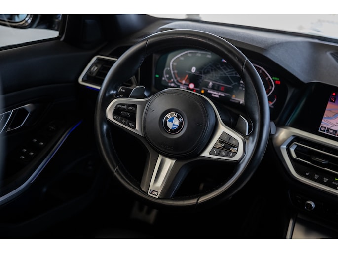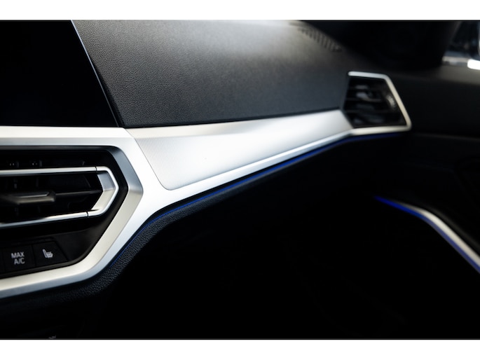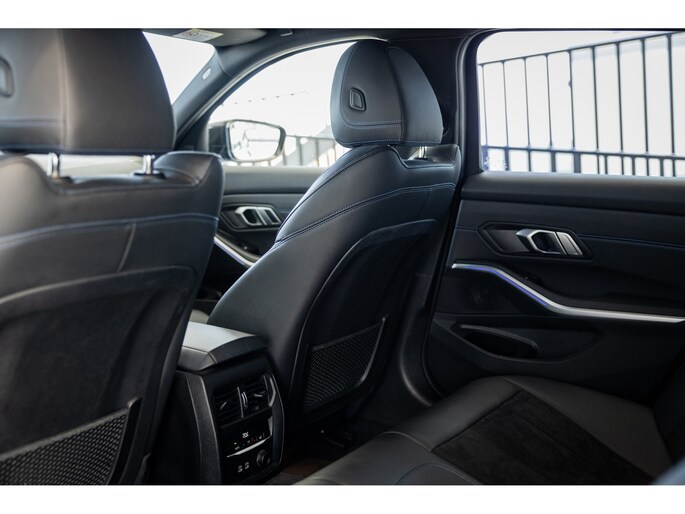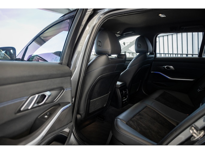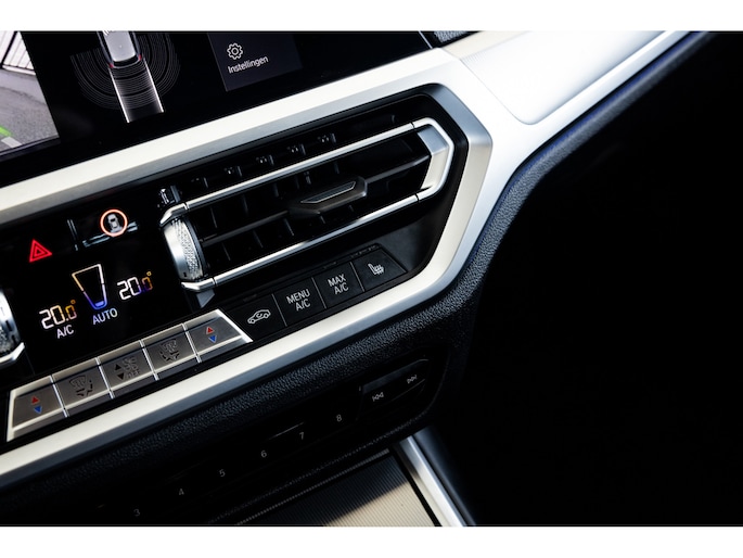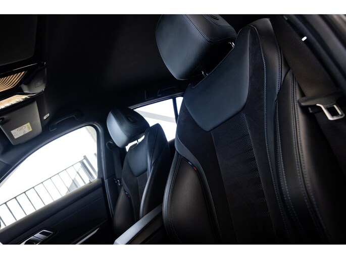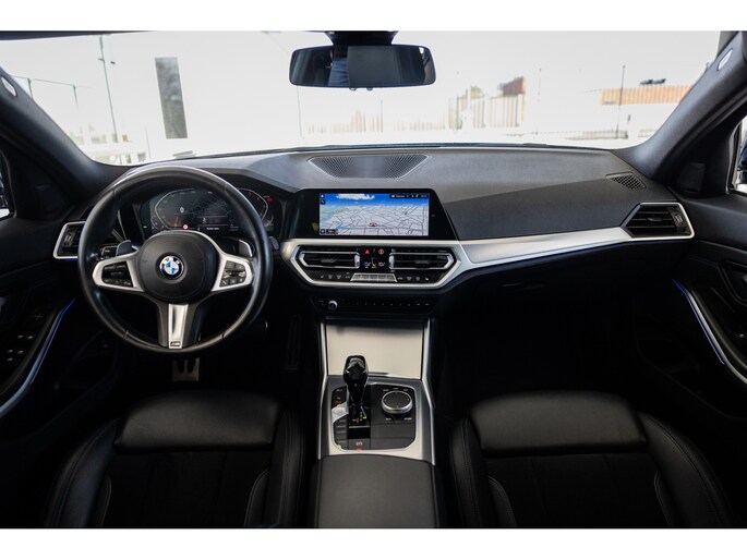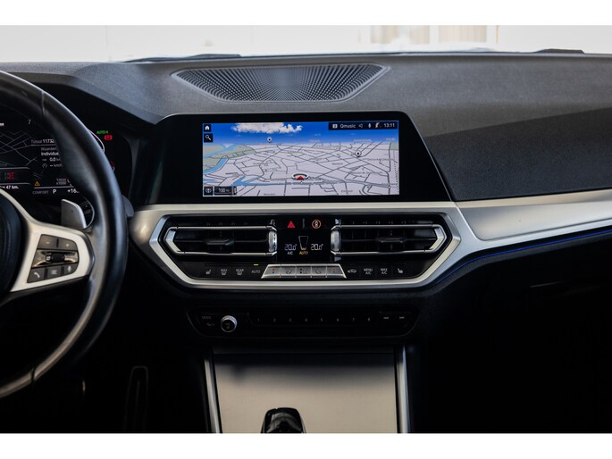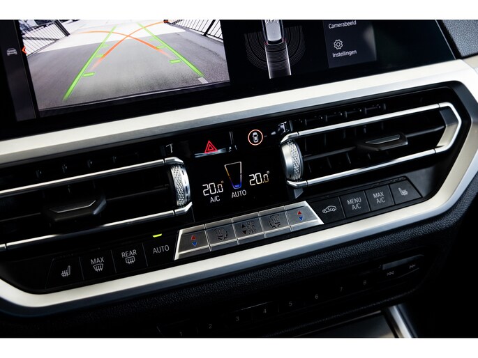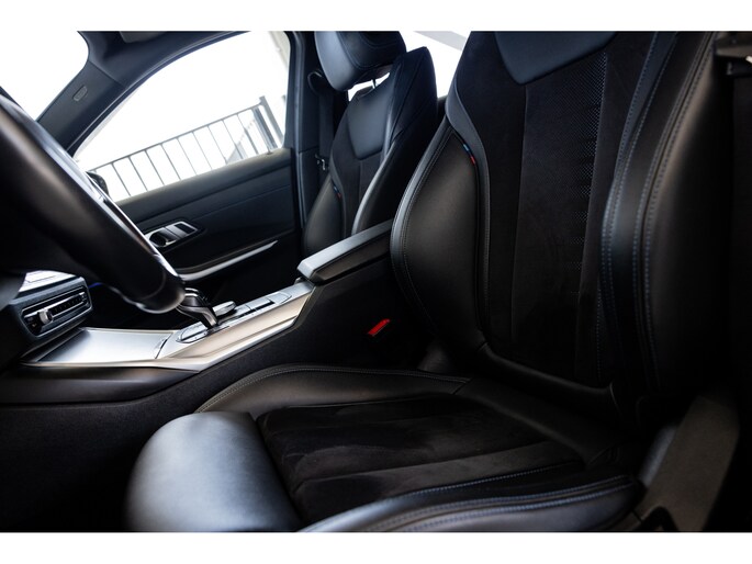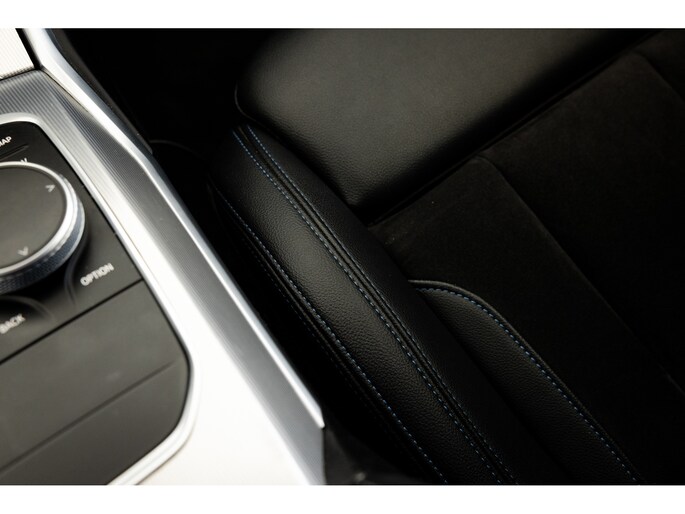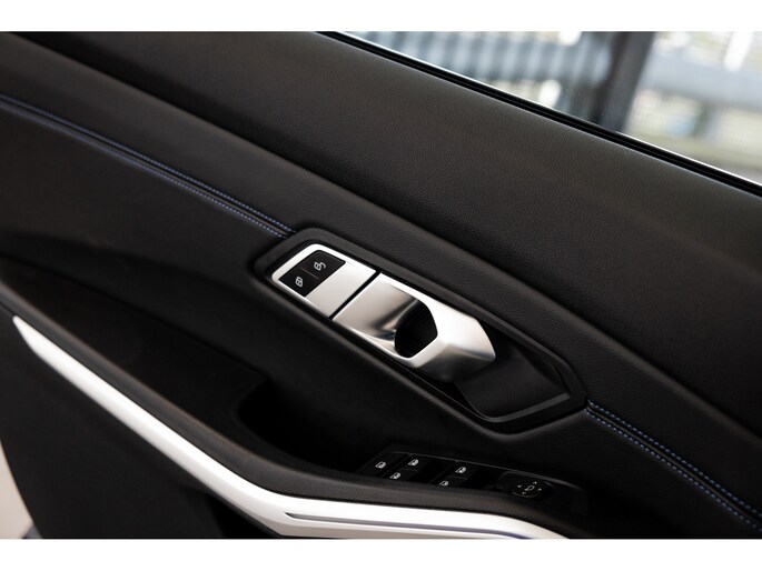Dit is de meest luxe High Executive uitvoering gecombineerd met M-Sport pakket voor zowel het exterieur als het interieur. Hierdoor zetel je op de fenomenale M Sport sportstoelen bekleed in leder en textiel en voorzien van M Sport accenten en blauwe stiknaden. Ook het dikke M Sport stuurwiel met schakelflippers dragen bij aan de sportieve imborst en uiteraard is de hemelbekleding zwart. Mooie details zijn de ambient sfeerverlichting die instelbaar is in ieder gewenste kleur. Het digitale dashboard veranderd met iedere rijmodi en het oogt fraai en modern. Uiteraard voorziet de 3-serie in het BMW multimediasysteem met onder meer navigatie, bluetooth telefonie en audiostreaming en achteruitrijcamera. Daarnaast beschikt het systeem over draadloos Apple CarPlay / Android Auto. Het BMW HiFi audiosysteem biedt een uitstekende audiobeleving. De automatische airconditioning kent gescheiden zones voorin, maar ook de passagiers op de achterbank hebben hun eigen klimaatinstellingen. Voorin zijn de stoelen uiteraard voorzien van stoelverwarming.
