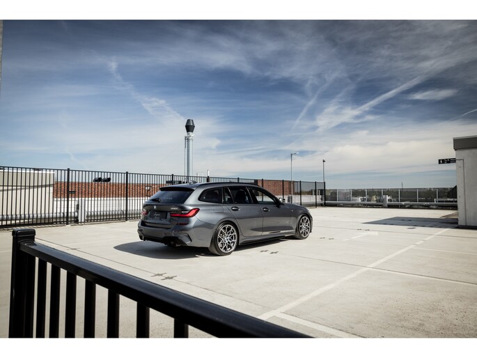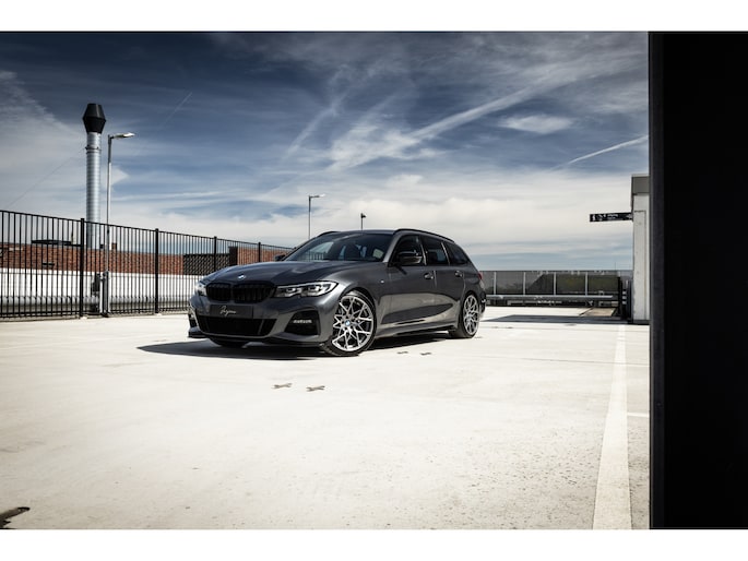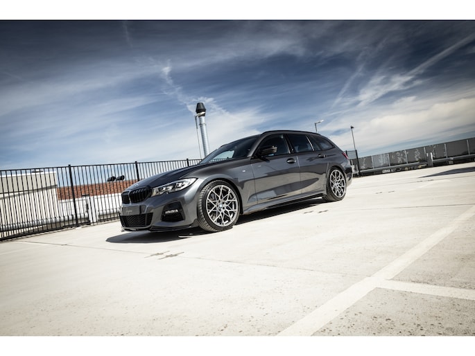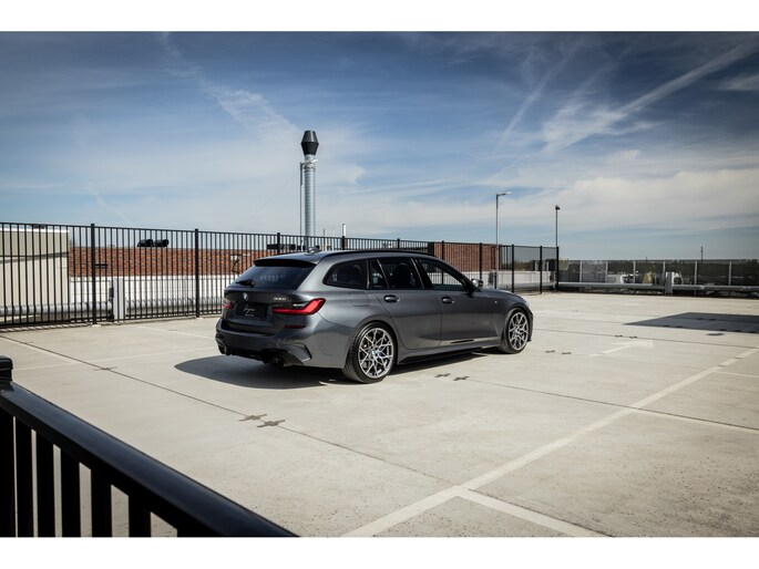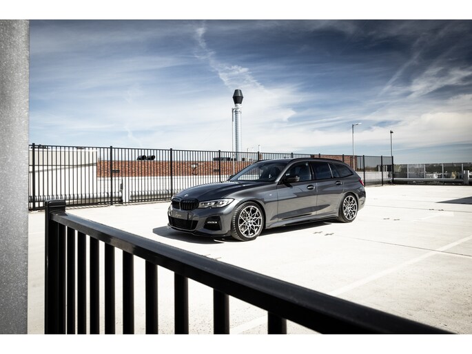 De samenstelling is echt waanzinnig goed gekozen. De prachtige kleur – Mineral Grau – is één van de mooiste kleuren die leverbaar was op de 3-serie. Gecombineerd met de hoogglans zwarte delen van het Shadow Line pakket echt prachtig. De gepaste, stijlvolle en ingetogen details van het extra M Performance kit onderstrepen het sportieve karakter terwijl de 19” M Performance Y-spoke breedset het geheel af maakt. De Style 795M past ontzettend fraai in deze combinatie en maken dit een unieke 3-serie Touring.
