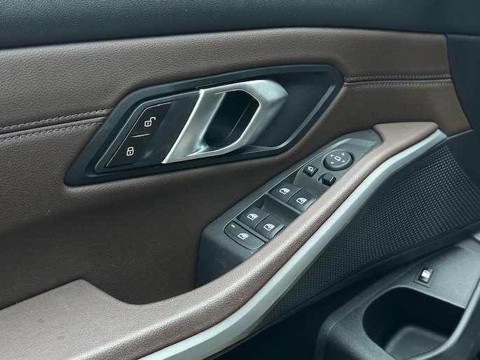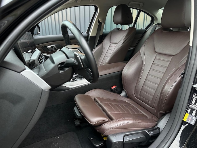 Deze originele Nederlandse zwart metallic, met bruin Hazelnoot lederen bekleding, BMW 320e 204pk Plug-in-Hybride Automaat is o.a. voorzien van een volautomatische airconditioning (voor en achter), FULL MAP NAVIGATIE, bluetooth connectiviteit, draadloos Apple Carplay/Android Auto, DAB+ radio, 17" LM-velgen met ALL SEASON banden, cruise control en speedlimiter, rijstrooksensor, achteruitrij-camera, parkeersensoren voor en achter, beide COMFORT voorstoelen in hoogte verstelbaar en verlengbare zitting, wangen bestuurstersstoel elektrisch verstelbaar, lederen stuurwiel in hoogte en diepte verstelbaar, middenarmsteun voor en achter, deelbare achterbank met skiluik én ISOFIX bevestigingspunten, regen- en lichtsensor, automatisch dimmende binnenspiegel, LED dagrijverlichting, LED koplampen, LED achterlichten, elektrische ramen voor en achter, buitenspiegels elektrisch verstelbaar en verwarmbaar, key less start, knipperlichten in de buitenspiegels, Drive modus, boordcomputer en een bandenspanningscontrole systeem.