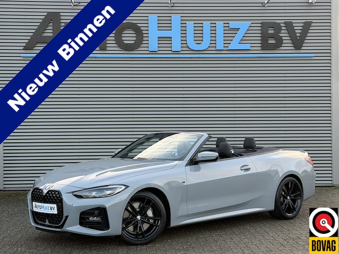 Nieuw binnen bij AutoHuiz BV Winschoten, een zo goed als nieuwe en zeer rijk uitgeruste BMW 4-serie Cabrio 430i High Executive M Sport in de kleur Brooklyn Grau metallic met een zwart lederen interieur.