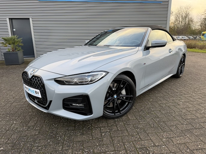 Nieuw binnen bij AutoHuiz BV Winschoten, een zo goed als nieuwe en zeer rijk uitgeruste BMW 4-serie Cabrio 430i High Executive M Sport in de kleur Brooklyn Grau metallic met een zwart lederen interieur.
