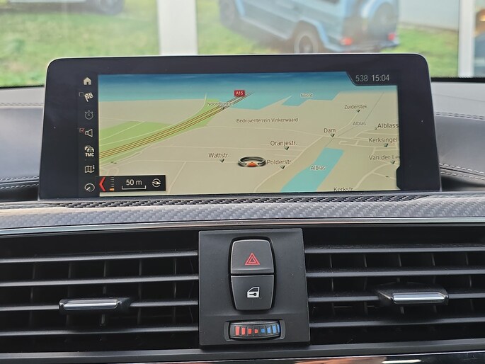 De M4 Cabrio biedt de pure sportieve rijervaring die je van een BMW M-model mag verwachten, met uitzonderlijke prestaties en dynamisch rijgedrag. De Harman Kardon audio-installatie zorgt voor een subliem geluid, ideaal voor lange ritten of het genieten van muziek met de kap open. Dankzij het Memory-pakket kun je snel je ideale stoelinstelling terughalen, wat het comfort van elke rit verhoogt. Daarnaast zorgt de navigatie ervoor dat je altijd de juiste route volgt, zonder gedoe.