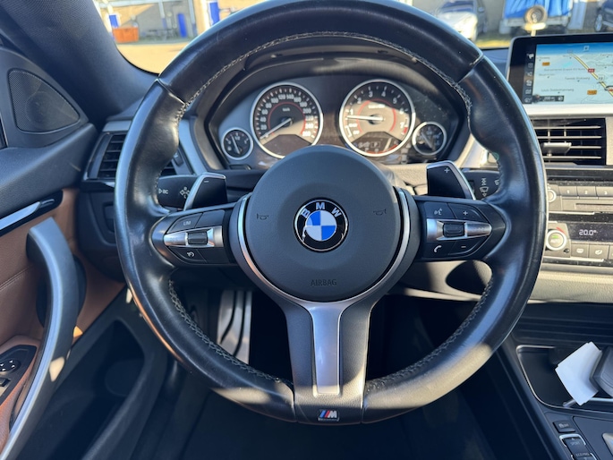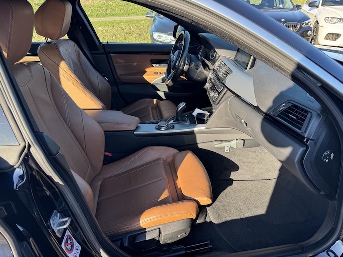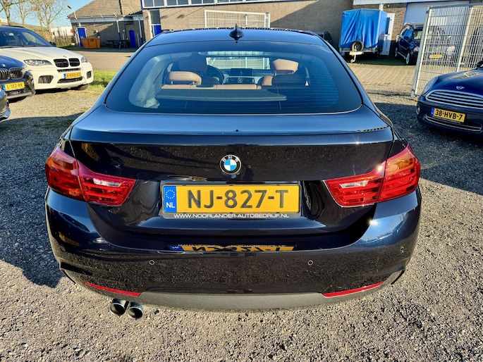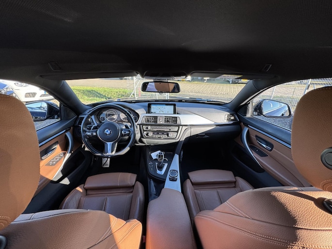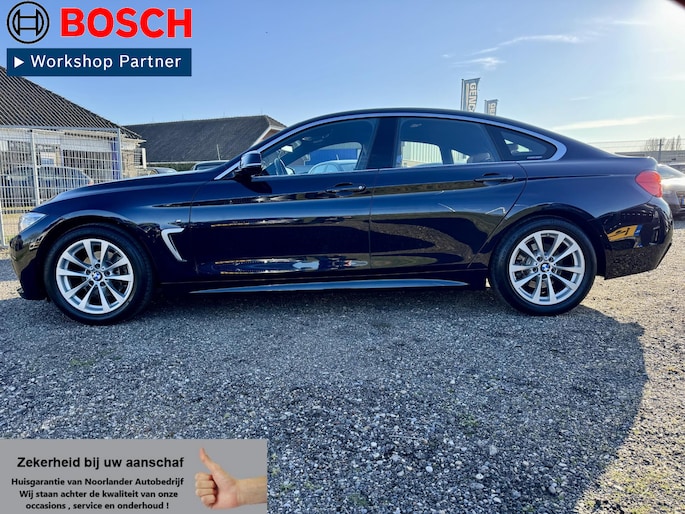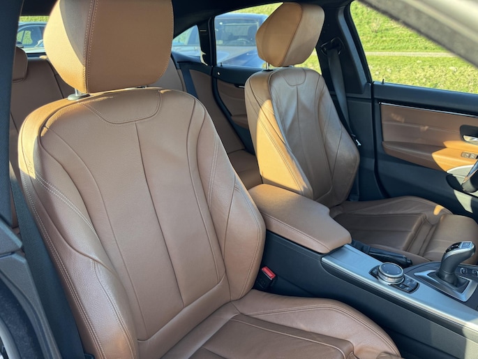 Ontdek de vele kwaliteiten van de BMW 4-serie Gran Coupé. Met zijn tijdloze design, zijn krachtige motor en zijn vele veiligheidssystemen laat deze auto u versteld staan. De aandrijving van deze BMW wordt verzorgd door een viercilinder benzinemotor en een automatische transmissie. U wilt comfort? Die is er, met het lederen interieur. U wilt gemak? Kijk dan even naar de elektrisch bedienbare achterklep. Voorin is het 's winters genieten met de verwarmbare voorstoelen voor zowel bestuurder als bijrijder. In het interieur domineren de sportstoelen, die er niet alleen stijlvol uitzien, maar die u ook optimaal ondersteunen tijdens de rit. In het donker zorgt de xenonverlichting voor een goed zicht op de weg. Bij de rijke uitrusting horen ook 18 inch lichtmetalen velgen, sportonderstel, adaptief dempingsysteem en variabele stuurbekrachtiging.