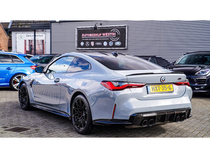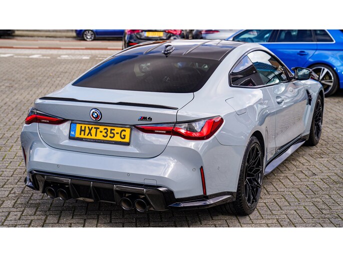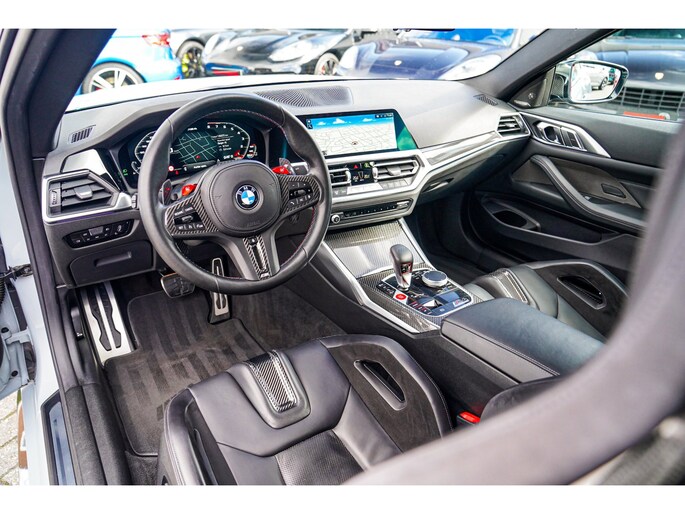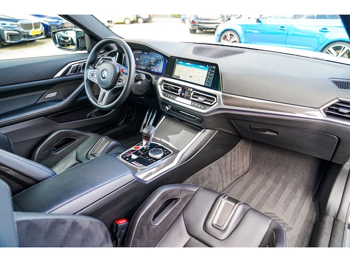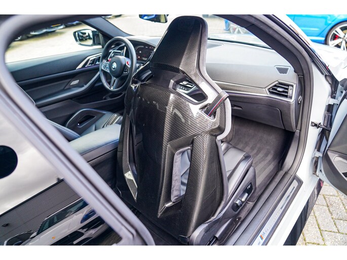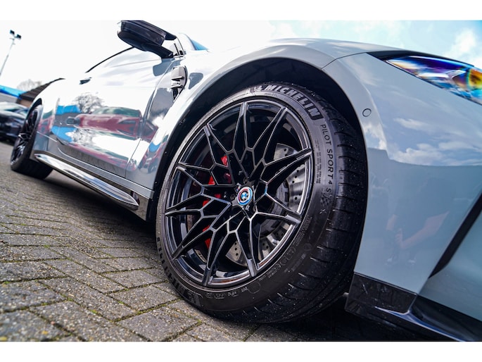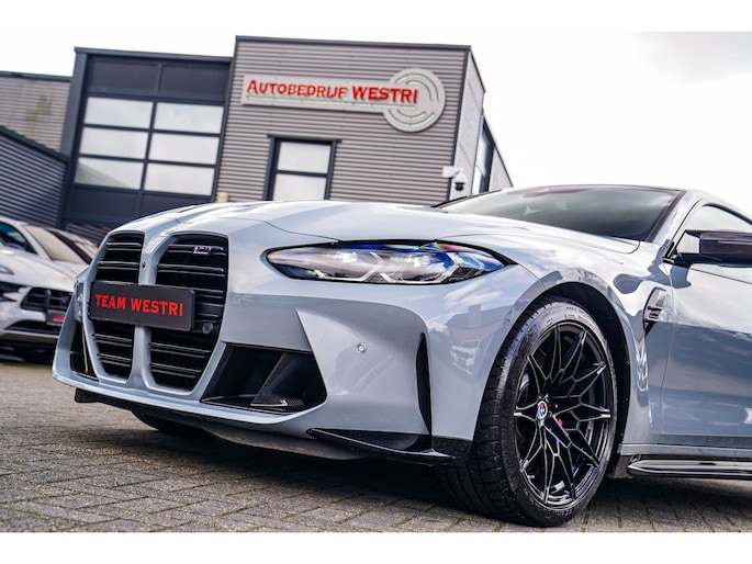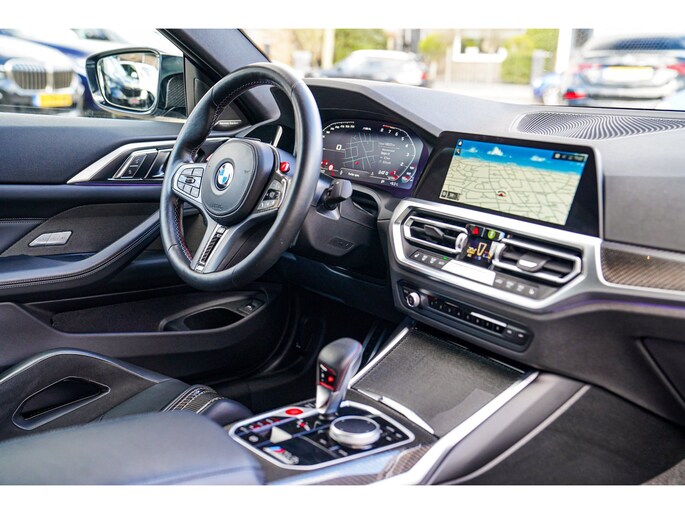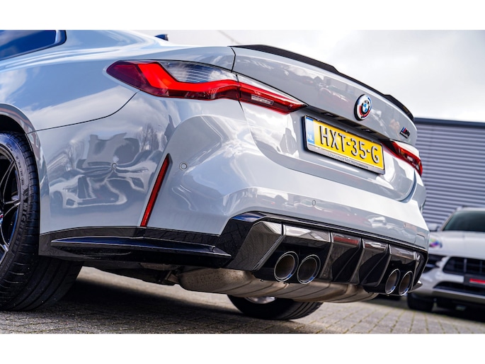 Nieuw op voorraad! Deze prachtige en ook bomvolle BMW M4 Competition uit 2021! Fully loaded, met Carbon Bucketseats , Head up display, Adaptieve cruise en nog veel meer! Uitgevoerd in de prachtige kleur Brooklyn grau. Ook van buiten heeft die Carbon, van diffuser tot spiegels en ook het dak!