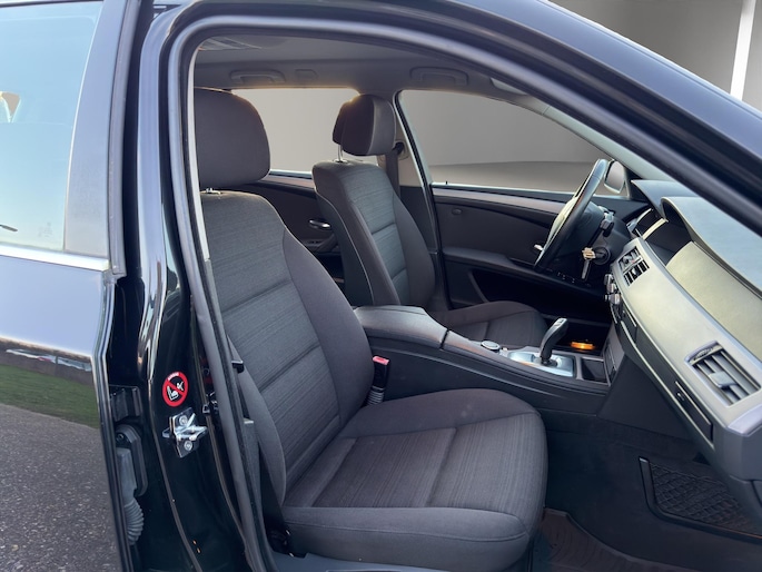 Bij het ontwerp van de BMW 5-serie Touring is alles gedaan om een kwaliteitsauto neer te zetten. Ook deze BMW is dan ook een auto die tegelijk stijlvol, comfortabel en ingetogen luxueus is. De aandrijving van deze BMW wordt verzorgd door een zescilinder motor en een automatische transmissie. De luchtvering zorgt voor beter contact met de weg en een uiterst soepele rijervaring. Ook 16 inch lichtmetalen velgen, aluminium dakrailing, metallic lak, elektrisch bedienbare ramen voor en elektrisch bedienbare en verwarmde buitenspiegels horen tot de voorzieningen op deze auto.