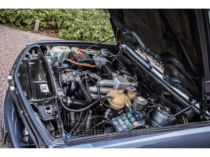 This beautiful BMW M535i still has its original Arktisblau metallic color with the matching, still completely original interior. The car has suffered some traces of use over time, but is still in very good condition. The original sliding-tilting roof works properly. The body color has a deep shine, the car has been partly repainted in the past. The body parts fit together well and the various rubber and trim parts are also still in excellent condition. The original tool set in the boot lid is also still complete.