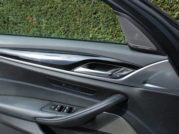 Zoals u mag verwachten van deze BMW 5-serie Touring is hij uitgerust met een reeks aan actieve veiligheidssystemen. Onderweg fungeert de verkeersbord-detectie als het ware als uw bijrijder en attendeert u op de verkeersborden langs de weg. Het Lane-keeping systeem zorgt voor een automatisch constante positie binnen de rijstrook. Afdwalen is uitgesloten. Veel aanrijdingen bestaan uit kop-staartbotsingen. De forward collision warning reduceert dat risico aanzienlijk. Dankzij veiligheidsvoorzieningen als head-up display, dodehoekdetectie, hill hold functie, brake assist en bandenspanningcontrolesysteem, bent u steeds veilig onderweg.