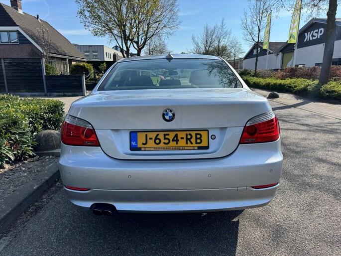 Zeer nette BMW 523i 6 cilinder met handgeschakelde versnellingsbak, Chrome Line exterieur, Glasdak elektrisch, Binnen-/buitenspiegel, aut. dimmend, luxe houten uitrusting, Alarm, Xenon licht, grootlicht assistent, Licht pakket, Park Distance Control (PDC), Adaptieve koplampen, Navi Prof./Mob. tel. voorber. Bluetooth, Stoelverwarming bestuurder/passagier, Neerklapbare achterbank, Binnenspiegel, automatisch dimmend, Zitting comfort met geheugen, Head-Up Display, Navigatiesysteem Professional, Pakket Advantage + innovatiepakket.
