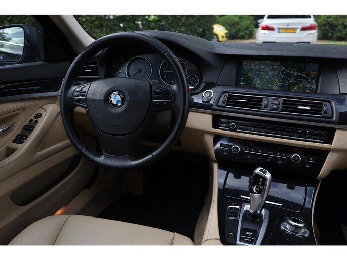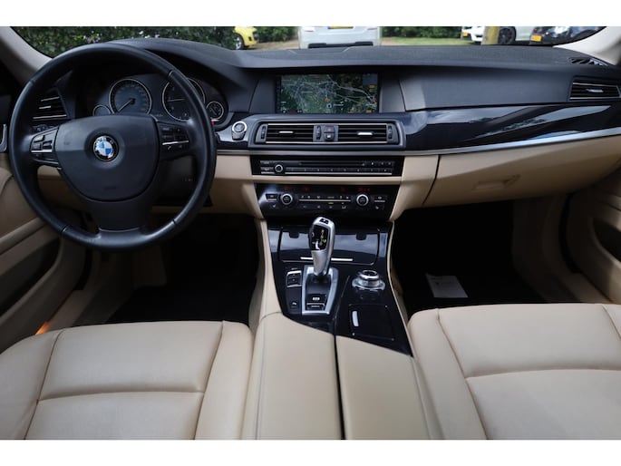 Plaatje van een BMW 5-serie uit het jaar 2012 met slechts 203.000KM. Dit exemplaar is perfect onderhouden waarvan wij de historie in ons bezit hebben. Smaakvol samengesteld met een Beige interieur.