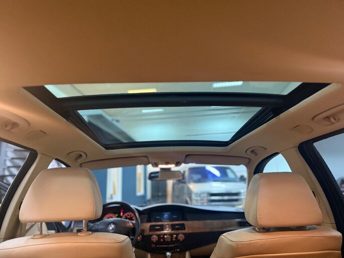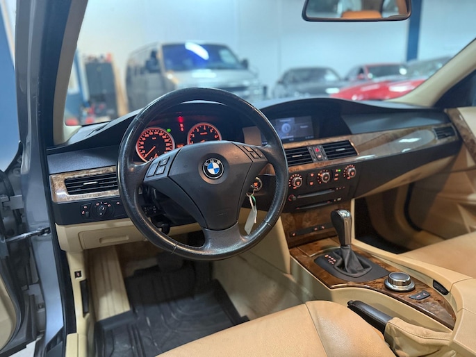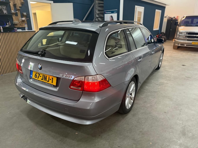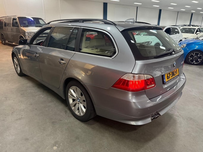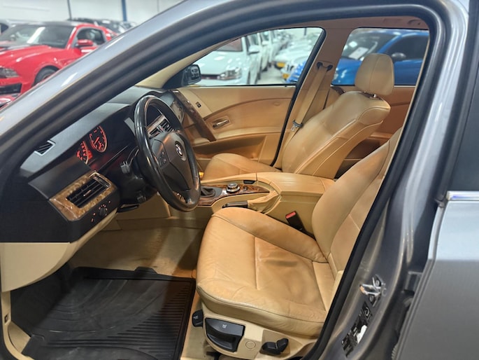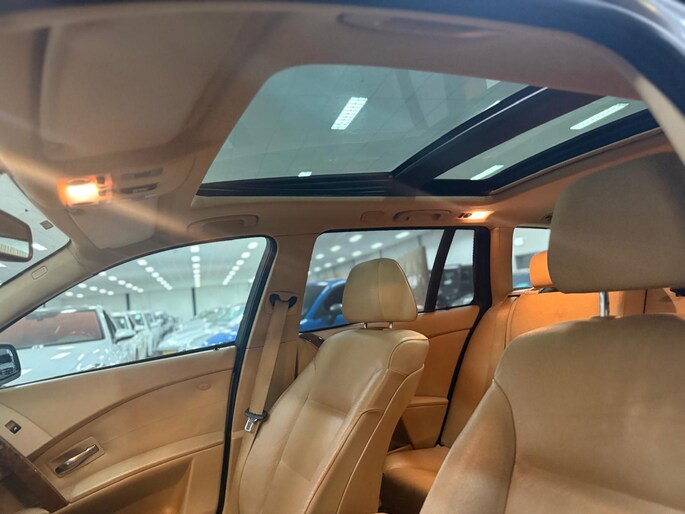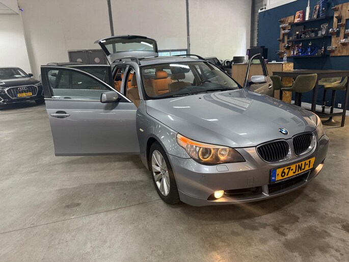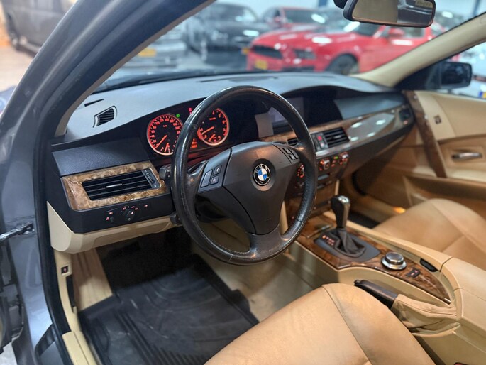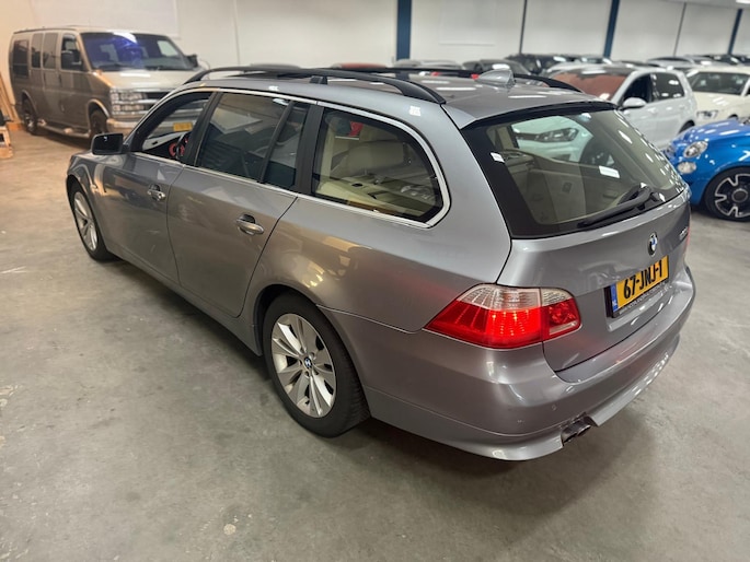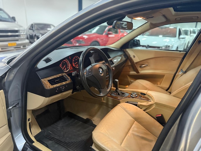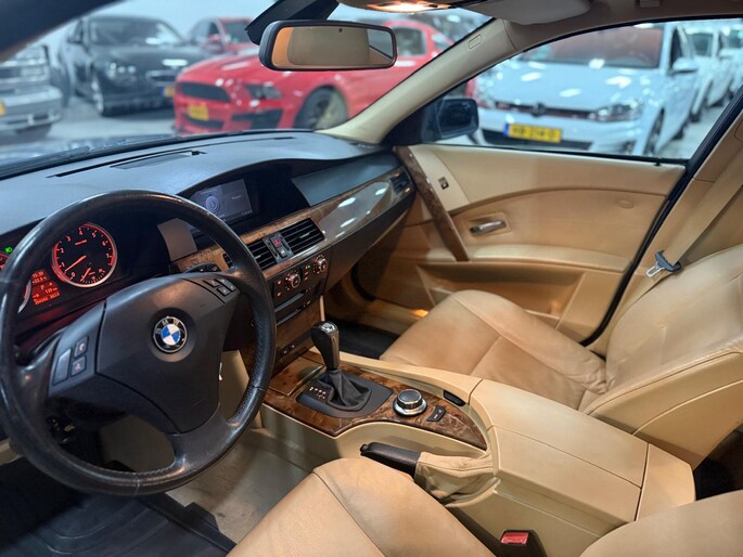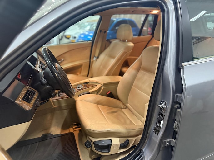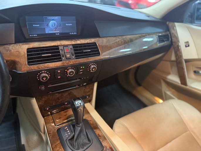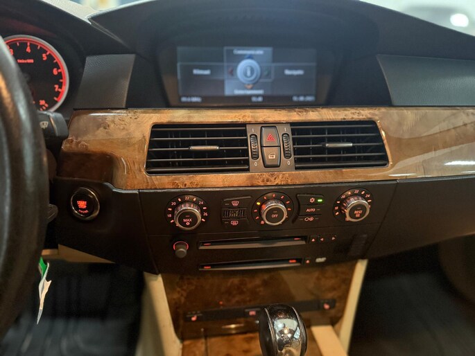 Het navigatiesysteem loodst u snel naar uw reisdoel. Automatische airconditioning regelt volautomatisch de temperatuur. U kiest de gewenste temperatuur en het systeem doet de rest. Een plekje vinden in de binnenstad is één, inparkeren is twee. Voor dat laatste heeft deze BMW 5-serie Touring prima parkeersensoren die u een handje helpen. De regensensor reageert op de neerslag die op de voorruit belandt. Van een paar spatjes tot een hoosbui: de ruitenwissers weten wat ze te doen staat. Ook op de korte stukken is de cruise control een uitkomst. Kijk maar bij de benzinepomp! De BMW is standaard voorzien van: lederen stuur, centrale deurvergrendeling met afstandsbediening en boordcomputer.