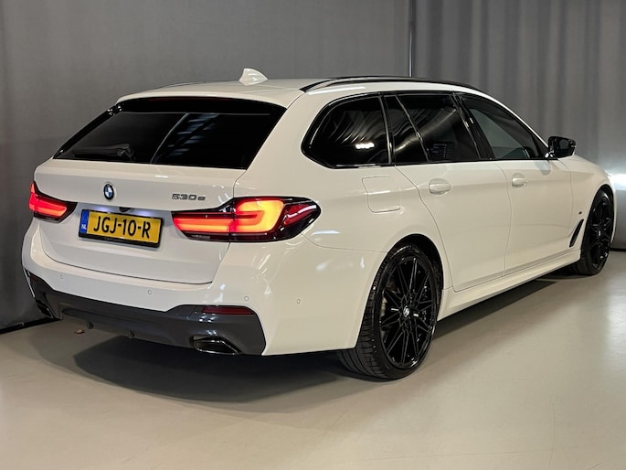 Touring 530e High Executive M Sport 20"/Soft Close/Active Steering/Panoramadak/Laser LED/Leder/Head-up/Keyless/Stoelverwarming + koeling/Adaptieve cruise/Dodehoek/Camera/Apple Carplay & Android Auto