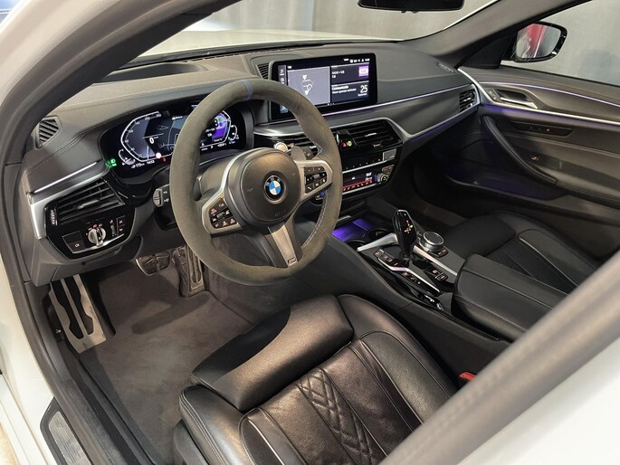 Met zijn elegante vormgeving en aangename interieur omgeving, is deze BMW 5-serie Touring in elk opzicht van topklasse, typisch voor echte Duitse auto's. Deze BMW 5-serie Touring is vanwege de hybride motor een echte slimmerd. Want u rijdt zowel op brandstof als elektrisch. En dat scheelt in de kosten! Als we het over kwaliteit en stijl hebben, wat dacht u dan van het lederen interieur? Dankzij de elektrische stoelbediening is het gemakkelijk om de optimale zitpositie te vinden. Licht en lucht komen onbelemmerd binnen als het elektrisch bediende glazen panoramadak met één druk op de knop wordt geopend. Een praktische extra is de elektrisch bedienbare achterklep die opent en sluit met een druk op de knop. Ook LED-koplampen, BMW M-sportpakket, extra getint glas, in delen neerklapbare achterbank, verstelbare lendensteunen en verwarmde ruitensproeiers zijn aan boord.
