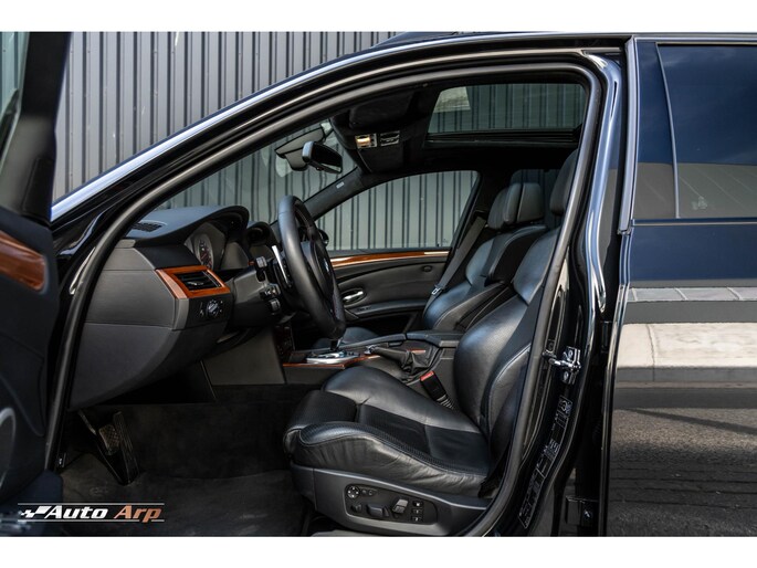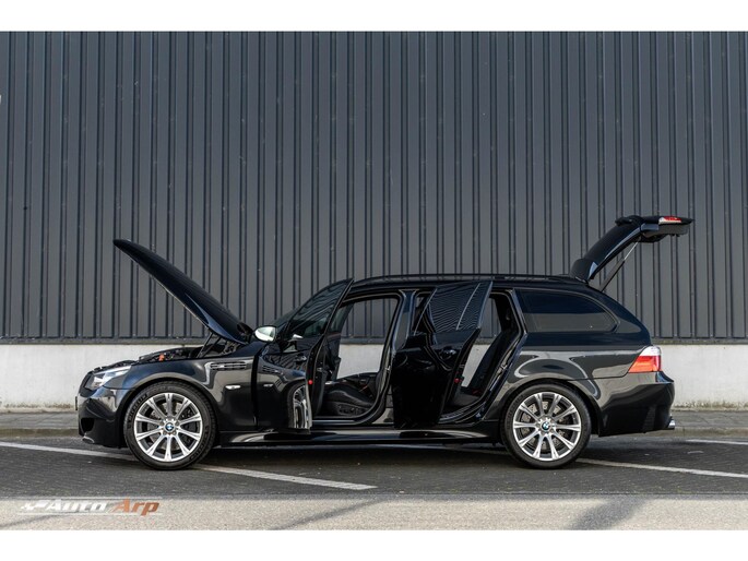 collectors item pur sang deze schitterende BMW E61 M5 touring. Slechts 1025 exemplaren rolde er wereldwijd van de band. Ons exemplaar heeft slechts 96.000km. De auto komt van 2e eigenaar direct uit een privé verzameling. De auto heeft van 2015 tot 2020 niet gereden. Het hoog-toerige M-blok in combinatie met de heerlijke V10 zal nooit meer terug keren. Ons exemplaar is maniakaal dealer onderhouden en staat volledig in de eerste fabriekslak. De kleurstelling black sapphire metallic met zwart lederen sportstoelen staan geweldig. De auto is uitstekend gedocumenteerd en tot in de puntjes verzorgd. De volledige optielijst is aangevinkt inclusief extended leder pakket en alcantara dakhemel. Een absolute kans voor de liefhebberverzamelaar een origineel en onverprutst exemplaar te bemachtigen. Lagerschalen, Koppeling, Vanos zijn zeer recent bij Procar gedaan rekening ruim €20.000