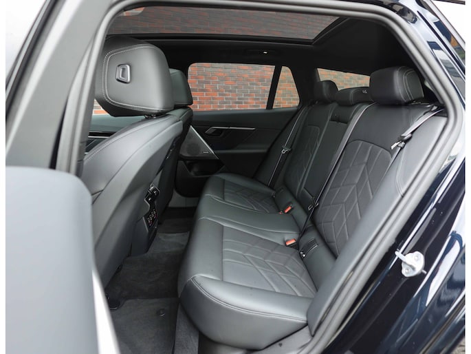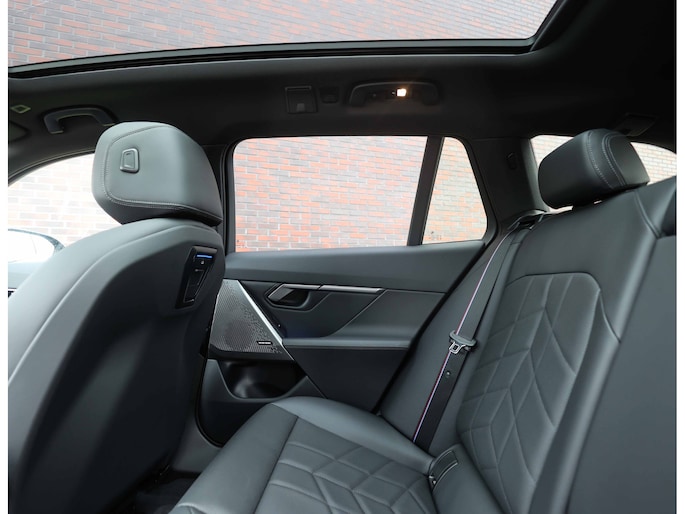 Binnenin vindt u geperforeerd zwart leder, subtiel afgewerkt met M-veiligheidsgordels. Het panoramadak zorgt voor extra licht en ruimtelijkheid in het interieur, terwijl de elektrisch wegklapbare trekhaak deze limousine ook praktisch inzetbaar maakt.