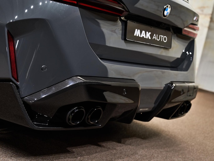 Het exterieur is verfraaid met M Koplampen Shadow Line (S3MFA), M Hoogglans Shadow Line uitgebreid (S7M9A) en het spectaculaire BMW Iconic Glow exterieurpakket (S3DPA). De M Carbon spiegelkappen (S3MEA) en M veiligheidsgordels (S4GQA) versterken de sportieve uitstraling. Binnenin zorgt de ambianceverlichting (S4URA) voor een luxueuze sfeer, terwijl het Carbon Fibre interieur met Silver Thread accent (S43PA) een hoogwaardig sportief accent toevoegt.