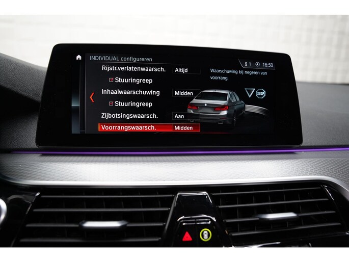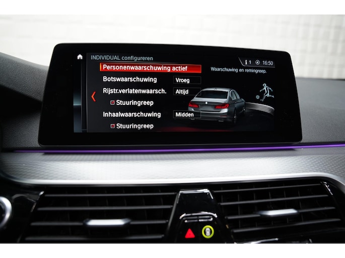 Zoals u mag verwachten van deze BMW 5-serie is hij uitgerust met een reeks aan actieve veiligheidssystemen. De actuele snelheidslimiet, een inhaalverbod en andere verkeersborden; de verkeersborddetectie ondersteunt u tijdens elke rit. Het Lane-keeping systeem zorgt voor een automatisch constante positie binnen de rijstrook. Afdwalen is uitgesloten. De actieve dodehoekdetectie helpt ongelukken te voorkomen. Ook helpen het head-up display, accident avoidance system, forward collision warning system, hill hold functie, brake assist en vermoeidheidsherkenning, uw rit tot een veilige rit te maken.