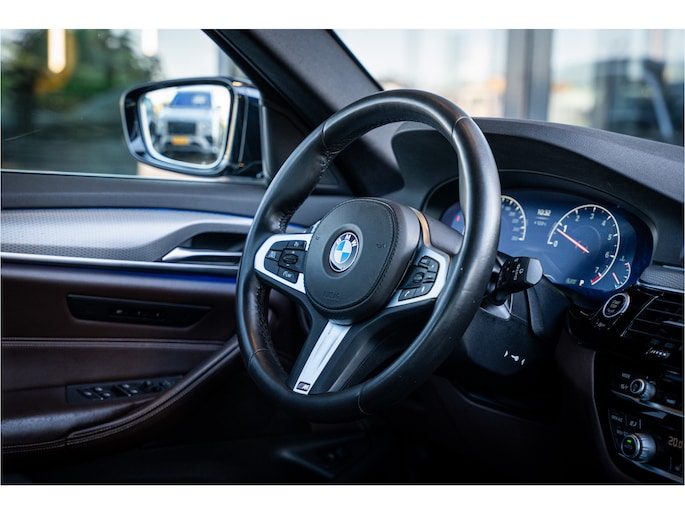 Al decennia staan Duitse merken bekend om hun ongeëvenaarde kwaliteit en prestaties. En dat geldt zeker ook voor deze BMW 5-serie Touring. Een viercilinder benzinemotor en een automatische transmissie zorgen voor de uitstekende prestaties van deze auto. De lederen bekleding geeft het interieur een hoogwaardige uitstraling. Neem plaats op de comfortabele stoelen. Dankzij de elektrische bediening en het geheugen is het eenvoudig om hierin de beste zitpositie te vinden. Volop licht en ruimtelijk gevoel geeft het elektrische bediende glazen panoramadak. De achterklep opent automatisch met een druk op de knop. Handig als u met volle handen staat. Bij de uitrusting van deze auto horen onder meer 20 inch lichtmetalen velgen, LED koplampen, BMW M-sportpakket, donker getint glas achter, in delen neerklapbare achterbank en verstelbare lendensteunen.