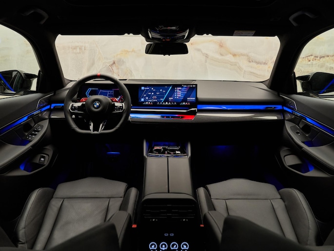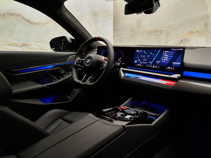 Het exterieur wordt verfraaid door de BMW Iconic Glow exterieurpakket (S3DPA) en de M koplampen Shadow Line (S3MFA), die de M5 een sportieve en luxueuze uitstraling geven. Binnenin zorgen de M veiligheidsgordels (S4GQA) en de hoogwaardige afwerking met koolstofvezel en Silver Thread (S43PA) voor een exclusieve sfeer. De hemelbekleding in alcantara antraciet (S776A) voegt een extra premium uitstraling toe.