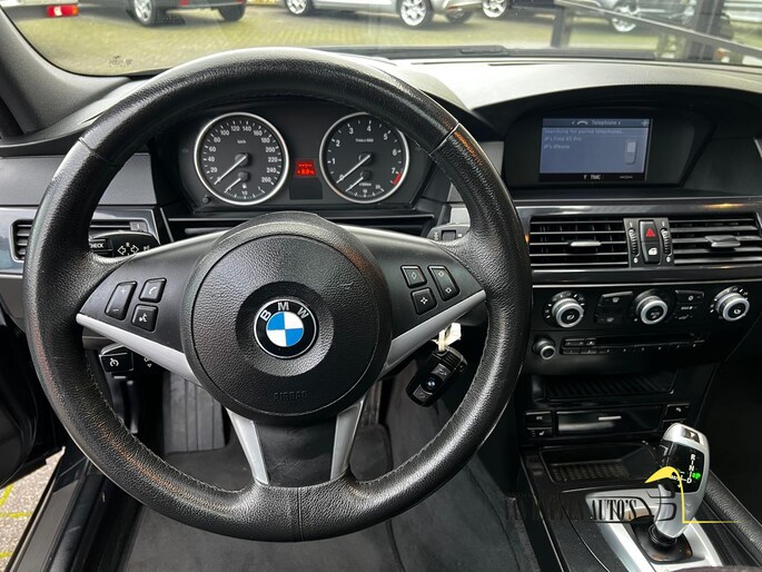 Pragmatisch en veilig als deze auto is, beschikt hij over diverse veiligheidssystemen. Een sterke optie van deze BMW 5-serie Touring is het bandenspanningscontrolesysteem. Veiligheid voorop!