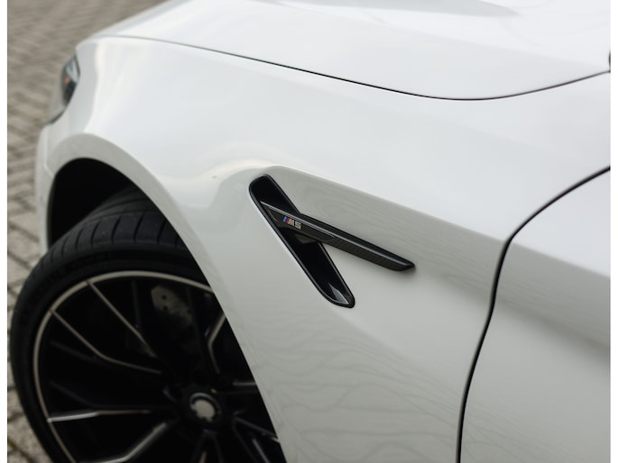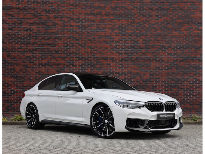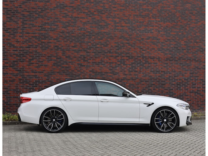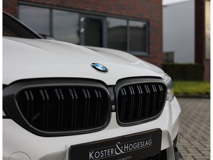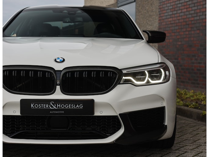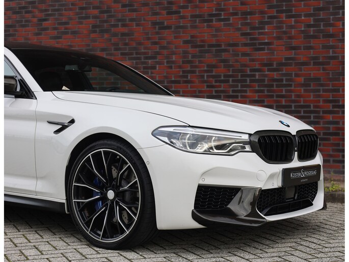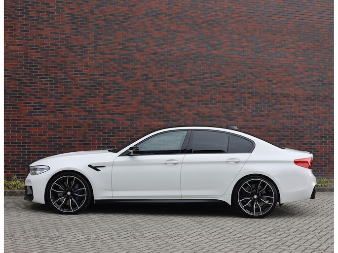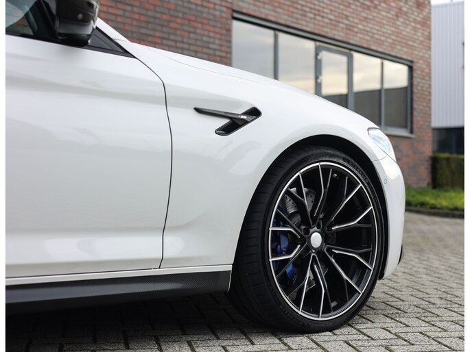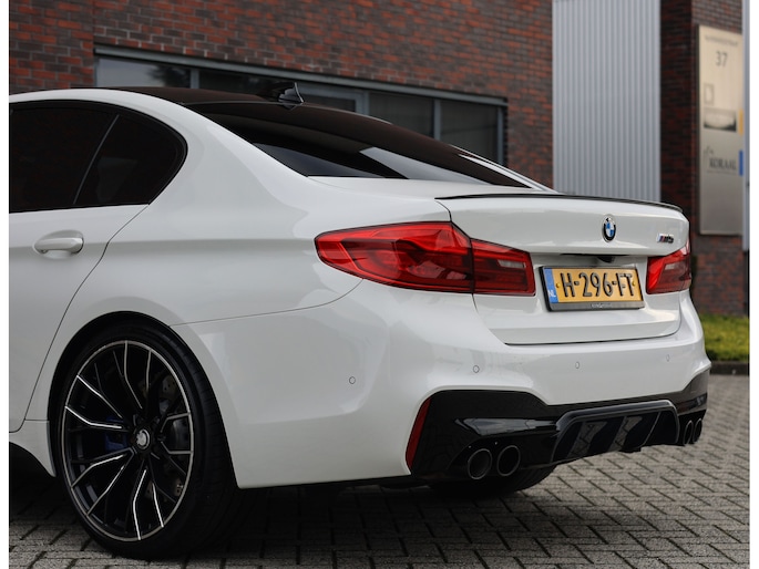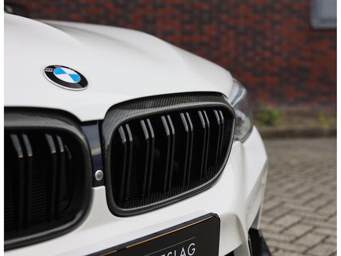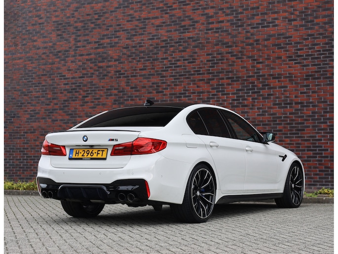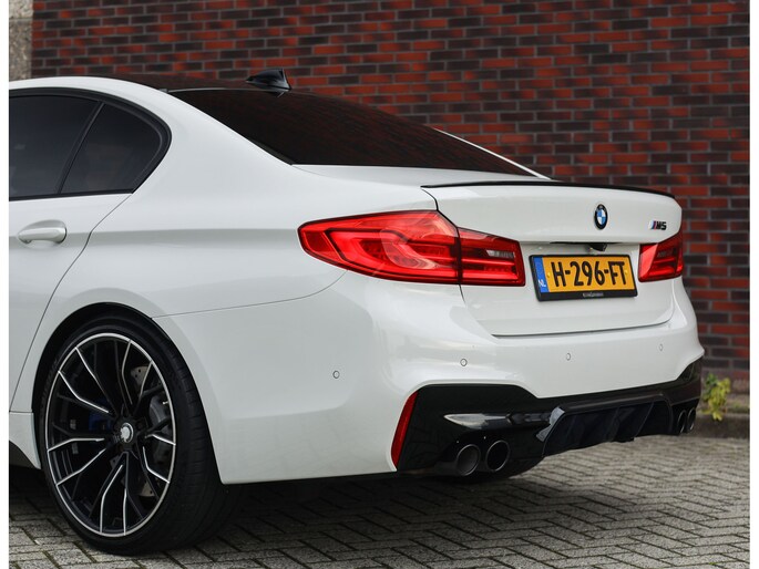 Deze BMW M5 uit 2019 is een auto die indruk maakt zonder zich op te dringen. In Alpinweiss, met zwarte M-velgen, carbon splitter en donkere accenten, straalt hij kracht en zelfvertrouwen uit. De bredere wielkasten en de vier uitlaatpijpen verraden dat het hier om een razendsnelle limousine gaat.