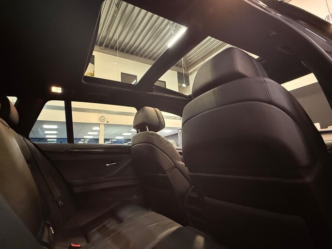 Een High-Executive uitvoering van een F11 laat weinig te wensen over maar de 1e eigenaar is in 2010 niet zuinig geweest met het aankruisen van leuke opties. Daarom beschikt deze Touring over onder andere het adaptieve Drive chassis met dynamische besturing en dynamische schokdemper controle, integrale stuurbekrachtiging met actieve besturing, een op afstand bedienbare elektrische achterklep, soft-close-automatiek voor portieren en achterklep, aluminium zijdeglans dakreling, het fantastische Panorama dak, ambiente interieurverlichting, volledig elektrisch verstelbare Comfort/Sportstoelen met verwarming, memorystanden en lendensteunen, adaptieve cruise control met Stop&Go functie, Professional audio-navigatiesysteem met geïntegreerde Bluetooth aansluiting, de nodige rij-assistent systemen etc. etc.