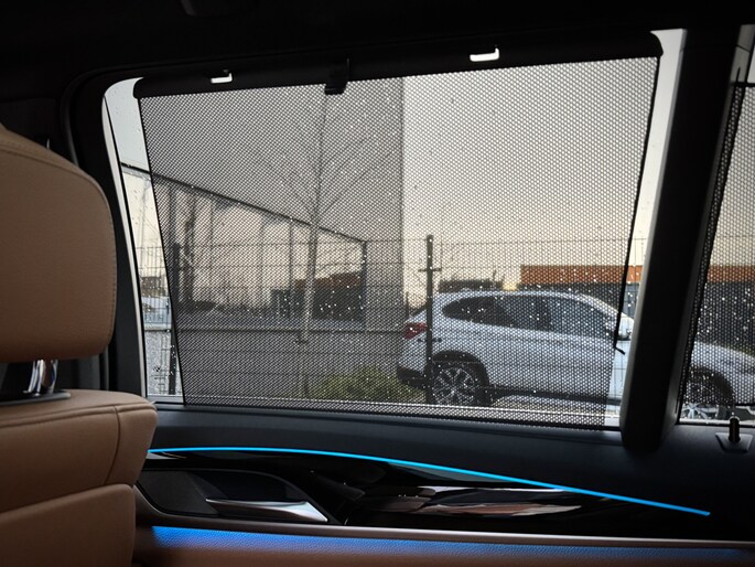 - Optie-pakket (Elektrisch zonnescherm achterruit, Zonnescherm zijruiten)