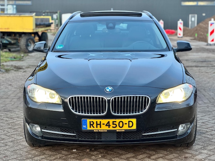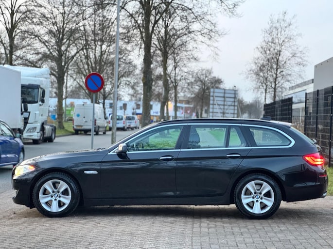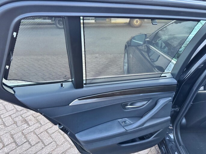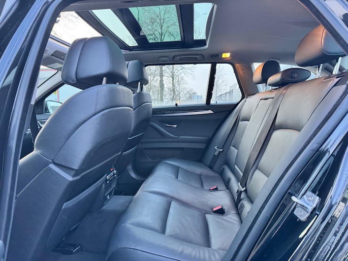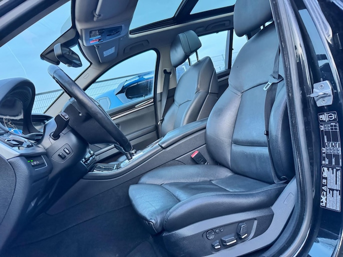 U rijdt gemakkelijk, comfortabel en zonder zorgen met deze BMW 5-serie Touring. Dankzij de zescilinder motor en de automatische transmissie, is het autorijden snel en comfortabel. Misschien valt u voor het lederen interieur. Maar wat een licht van binnen ook, dankzij het elektrisch bediende glazen panorama dak; en niet te vergeten het grote gemak van een elektrisch bedienbare achterklep. Niets toont luxueus comfort zoals de stoelverwarming met massagefunctie, stuurverwarming en verwarmbare achterbank van de auto. De sportstoelen zien er niet alleen prachtig uit, maar zijn ook functioneel, zoals u kilometer na kilometer zult merken. Dankzij de xenonverlichting profiteert u in het donker van een krachtige en heldere lichtbundel. Ook 18 inch lichtmetalen velgen, sportonderstel, extra getint glas, in delen neerklapbare achterbank, verstelbare lendensteunen en verwarmde ruitensproeiers horen tot de voorzieningen op deze auto.