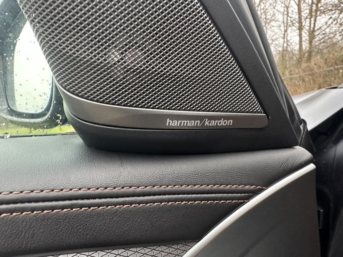 En cognac leder , in combinatie met harman kardon instalatie en het head-up display .