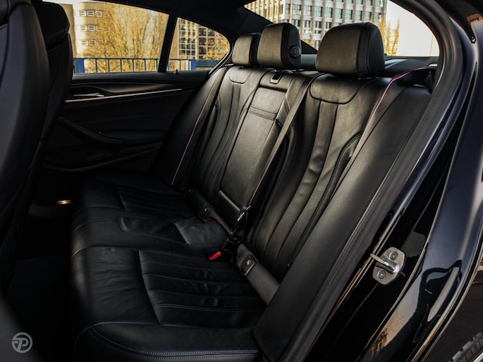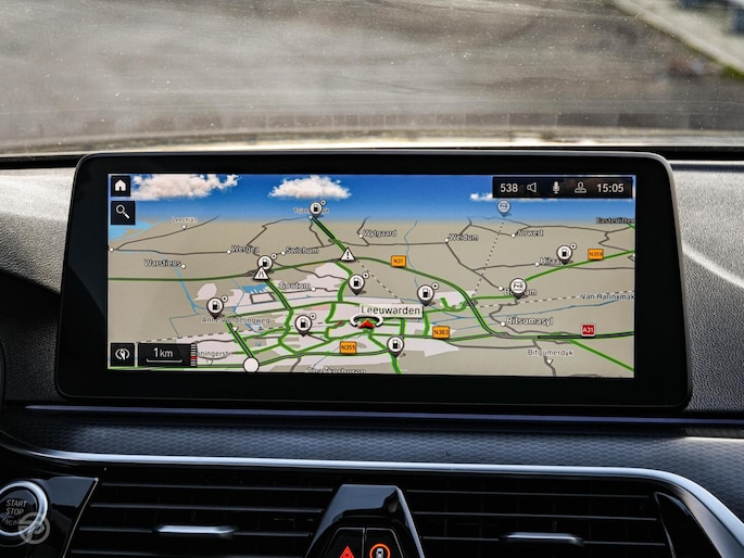 De nieuwste veiligheidssystemen komen in deze BMW 5-serie samen. In het instrumentarium ziet u tijdens de rit ook de belangrijkste verkeersborden aangegeven, die de auto automatisch voor u leest. Deze BMW 5-serie is ook behulpzaam als het gaat om een rechte koers. Het Lane-keeping systeem signaleert en corrigeert als u onbedoeld de rijstrooklijnen dreigt te overschrijden. De actieve dodehoekdetectie draagt bij aan uw eigen veiligheid en die van uw medeweggebruikers. De auto is ook uitgerust met head-up display, forward collision warning system, hill hold functie, brake assist en bandenspanningcontrolesysteem.