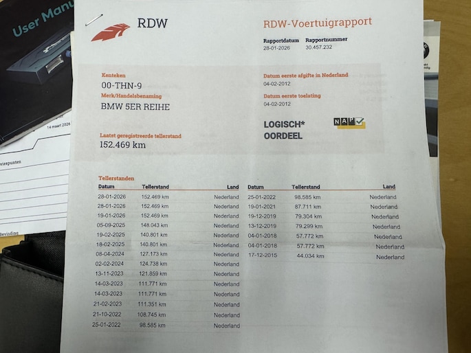 - Onderhoudsboekje (fysiek)
