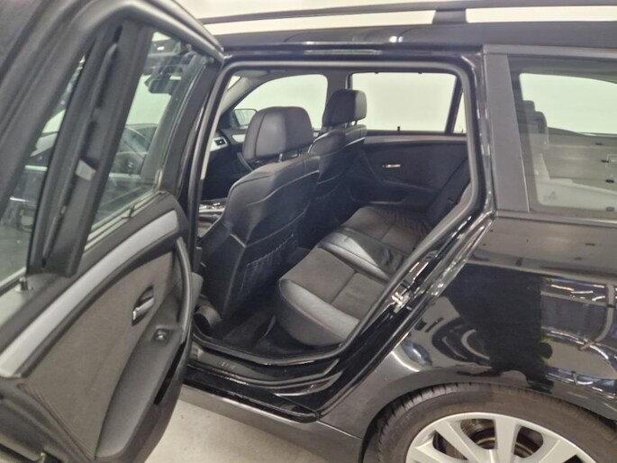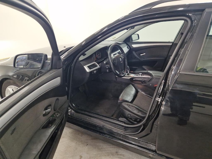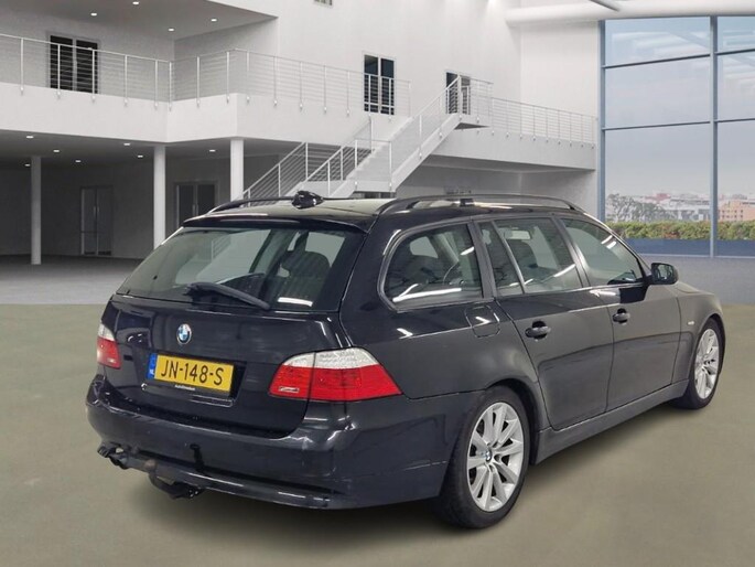 U rijdt gemakkelijk, comfortabel en zonder zorgen met deze BMW 5-serie Touring. Een krachtige motor geeft deze auto zijn sportieve prestaties. Een blik van dichtbij onthult meteen twee mooie pluspunten: het lederen interieur en de elektrisch bedienbare achterklep. Neem plaats op de comfortabele stoelen. Dankzij de elektrische bediening en het geheugen is het eenvoudig om hierin de beste zitpositie te vinden. Ongeacht de lading en het aantal passagiers: de rijhoogte is dankzij de luchtvering altijd constant. Pak aan, 't is winter! Zo'n verwarmd stuurwiel is dan bijzonder prettig! Xenonverlichting zorgt voor een heldere witblauwe lichtkleur en een scherp lichtbeeld. Verder is de BMW uitgerust met: 17 inch lichtmetalen velgen, sportonderstel, halflederen bekleding, verstelbare lendensteunen en snelheidsafhankelijke stuurbekrachtiging.