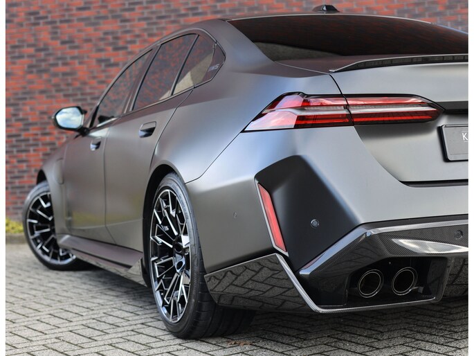 Uitgevoerd in de exclusieve kleur Frozen Deep Grey II metallic, gecombineerd met het luxueuze Merino leder in rood/zwart, staat hier een sportlimousine die zijn gelijke niet kent. De carbon accenten versterken zijn krachtige uitstraling en matchen perfect met het matte lakwerk. Om het nóg een stap verder te zetten hebben wij dit exemplaar uitgerust met het volledige M Performance pakket. Een grote carbon splitter, zijskirts en diffuser geven deze M5 een look die zijn gelijke niet kent!