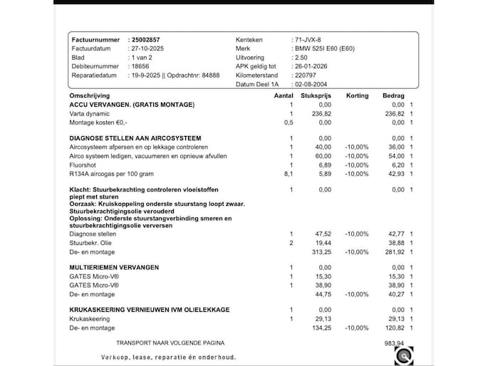 • Onderhoudsbeurt