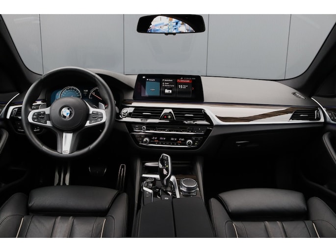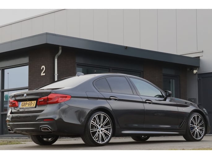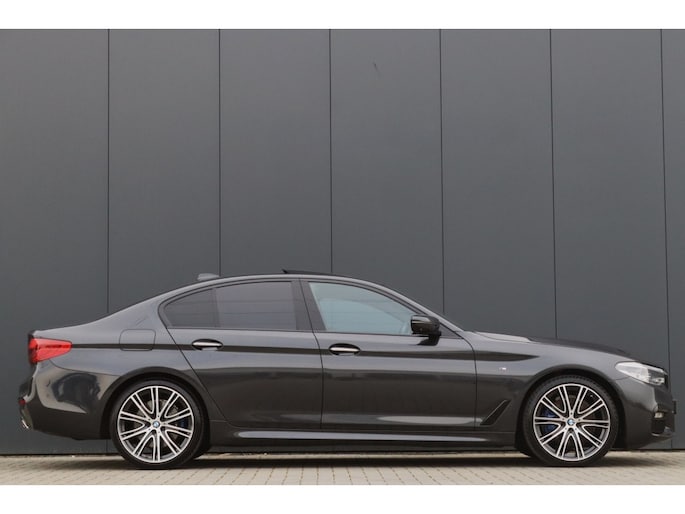 Met enige regelmaat hebben wij de BMW 5 serie sedan in onze voorraad, zo ook deze BMW 530d xDrive (6 cilinder diesel) Sedan M Sport. Fantastisch uitgevoerde BMW 530d xDrive G30 Sedan M Sport in de kleur A90 sophisto-grau brillant metallic met glasheldere historie afkomstig van 2e eigenaar. Deze auto is af-fabriek voorzien is van het gewilde BMW M Sportpakket wat voor een dikkere en sportievere uitstraling zorgt. Het M Sportpakket brengt tevens diverse andere leuke opties met zich mee waaronder diverse ‘M’ details (instaplijsten, voetsteun, dik M sportstuur, zwarte hemel, M sportonderstel enz). Naast de opties die bij het M Pakket horen is deze voorzien van een aantal aantrekkelijke opties zoals onder andere; 20 inch M velgen Styling 759, Adaptive LED koplampen, LED Dagrijlichten, Licht pakket (LED’s in portiergrepen), M Sport uitvoering, Surround-view (rondom camera's + parkeersensoren voor + achter, Head-Up display, Comfort stoelen, Open dak, Stoelverwarming + stuurverwarming, Harman-Kardon surround systeem, Driving assist professional (active cruise controle, lane-assist etc.), neem gerust de complete opties voor alle opties.