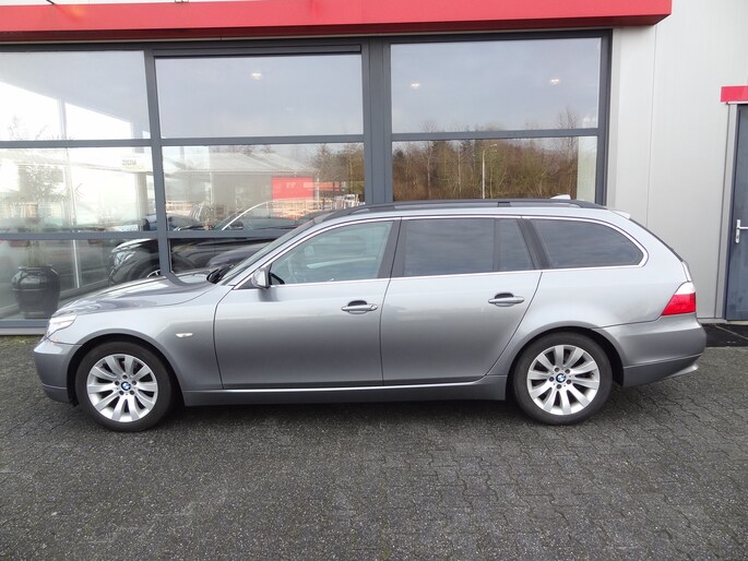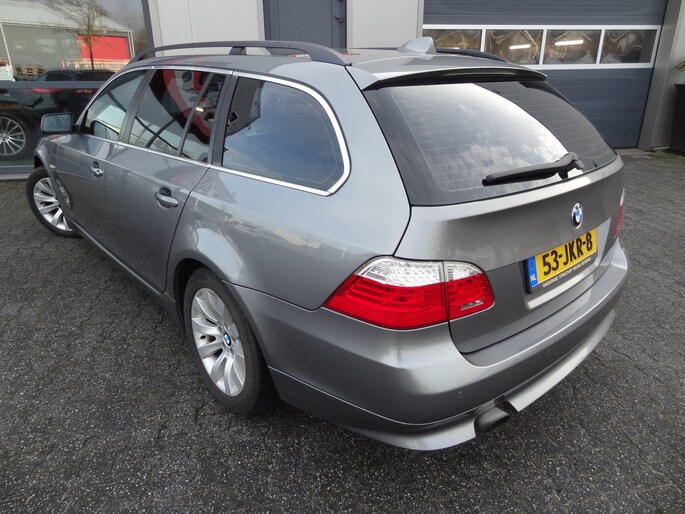 Een occasion om van te dromen. Deze BMW 5-serie Touring brengt behalve een pittige motor en een vriendelijke kilometerstand ook de nodige extra's mee. Met een viercilinder benzinemotor en een automatische transmissie beschikt deze BMW over uitstekende prestaties. Het met leer beklede interieur geeft deze auto een gedistingeerde uitstraling. Neem plaats op de comfortabele stoelen. Dankzij de elektrische bediening en het geheugen is het eenvoudig om hierin de beste zitpositie te vinden. Verder is de BMW uitgerust met: 17 inch lichtmetalen velgen, warmtewerend glas, in delen neerklapbare achterbank en snelheidsafhankelijke stuurbekrachtiging.