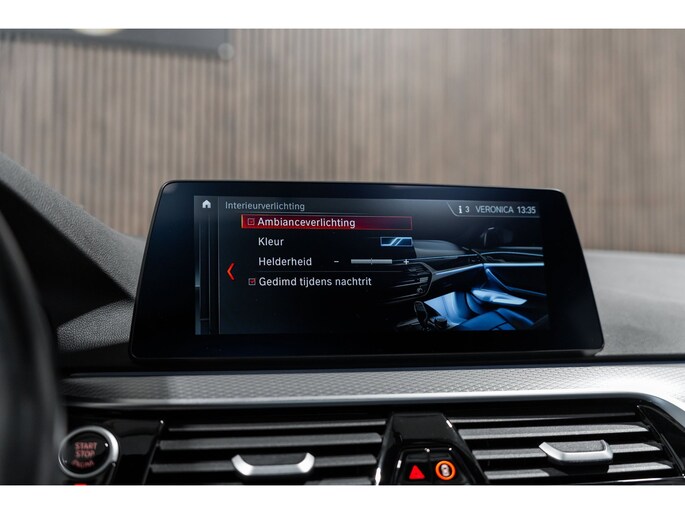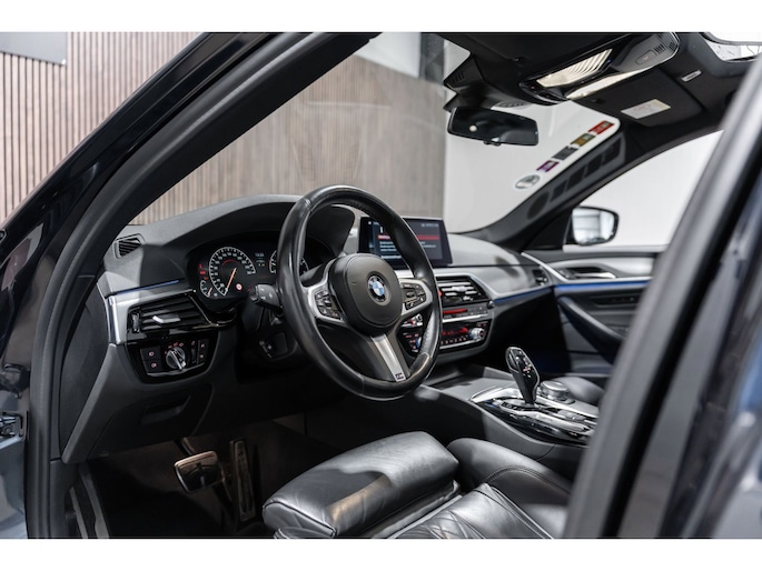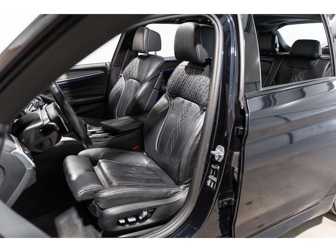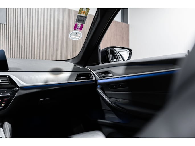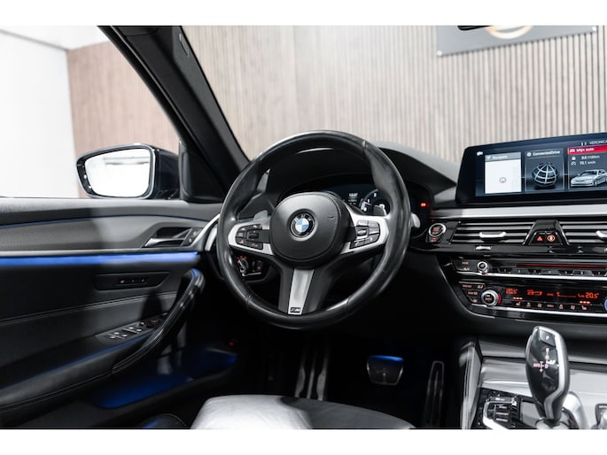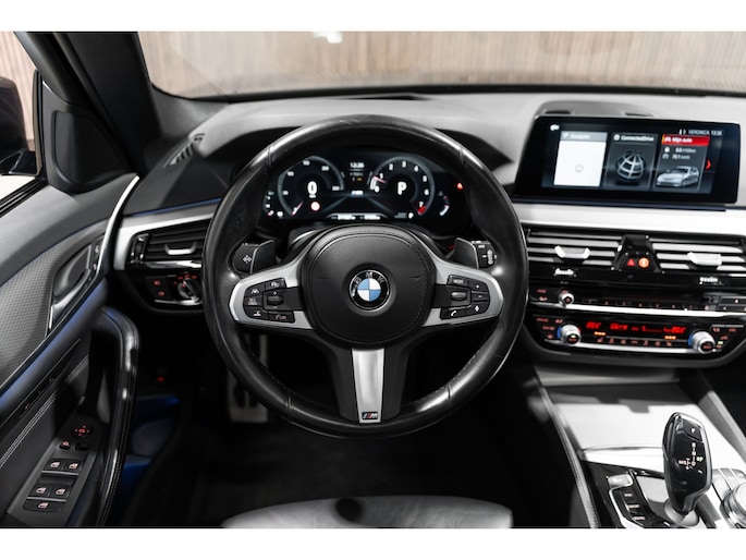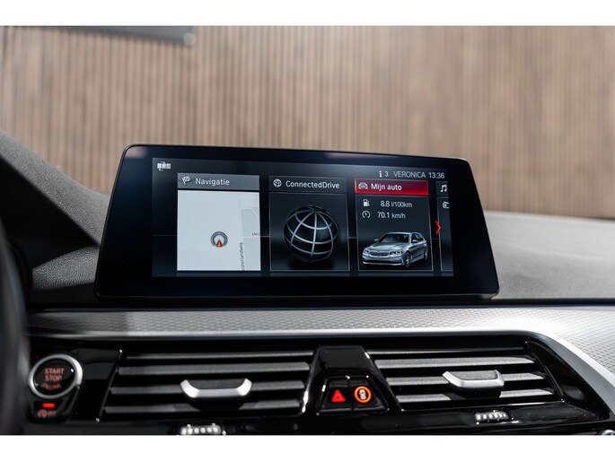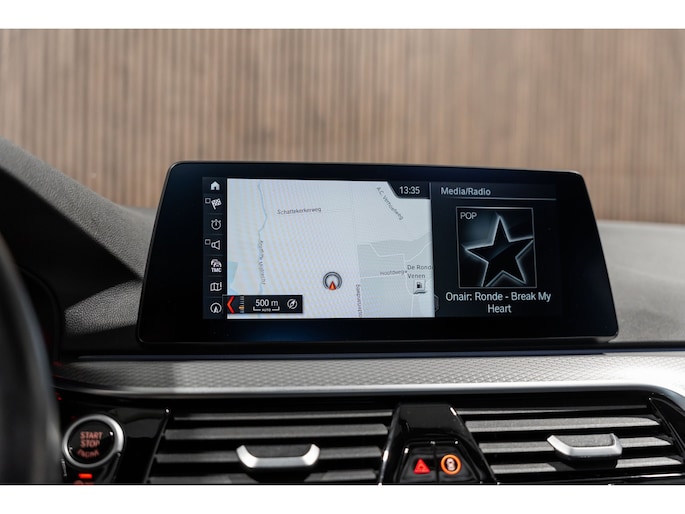 Pragmatisch en veilig als deze auto is, beschikt hij over diverse veiligheidssystemen. In het instrumentarium kunt u bovendien de verkeersborden zien die u onderweg tegenkomt. Zo helpt deze BMW u om veiliger te rijden. Deze BMW 5-serie Touring is ook behulpzaam als het gaat om een rechte koers. Het Lane-keeping systeem signaleert en corrigeert als u onbedoeld de rijstrooklijnen dreigt te overschrijden. Veilig inhalen gaat moeiteloos dankzij actieve dodehoekdetectie. Het veiligheidssysteem waarschuwt als een ander voertuig in uw dode hoek rijdt. De auto is ook uitgerust met head-up display, accident avoidance system, forward collision warning system, hill hold functie, brake assist en bandenspanningcontrolesysteem.