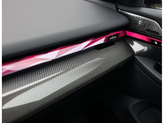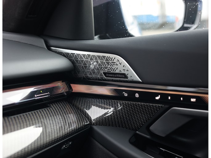 Binnenin vinden we naast het Merino leder een M lederen sportstuurwiel, M multifunctionele stoelen met verwarming en ventilatie, een panorama dak en de exclusieve Crafted Clarity glazen bedieningselementen. Het interieur wordt compleet gemaakt door het Bowers & Wilkins Surround Sound System.