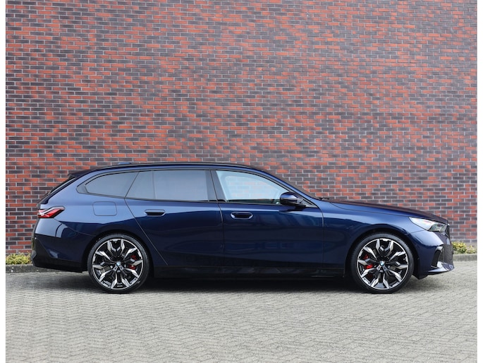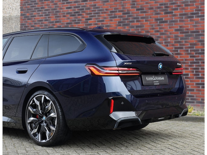Ook het exterieur laat niets te wensen over. Deze Tansanitblauwe metallic 550e is rijk uitgerust met het BMW Iconic Glow exterieurpakket, M Shadow Line accenten en de M Sport remmen in hoogglans rood, wat het sportieve karakter extra benadrukt.