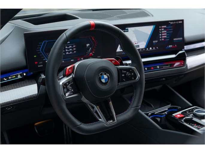 De BMW M5 Touring 2025 is een krachtige plug-in hybride die sportieve prestaties combineert met luxe en functionaliteit. Met een systeemvermogen van 727 pk en een koppel van 1.000 Nm accelereert hij in 3,6 seconden van 0 naar 100 km/u. Dankzij de M HYBRID-aandrijflijn, bestaande uit een 4,4-liter