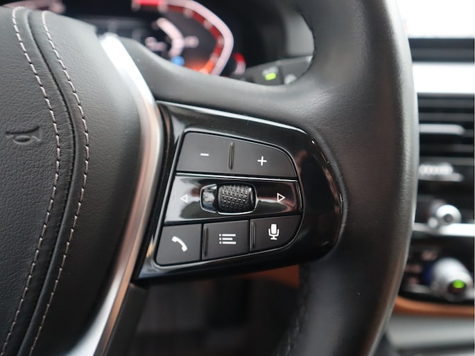 Origineel Nederlandse 5 Serie, in Saphirschwarz metallic met fraai Cognac kleurig Dakota leder, de fijne sportstoelen en een af fabriek wegklapbare trekhaak en heeft recent onderhoud gehad!